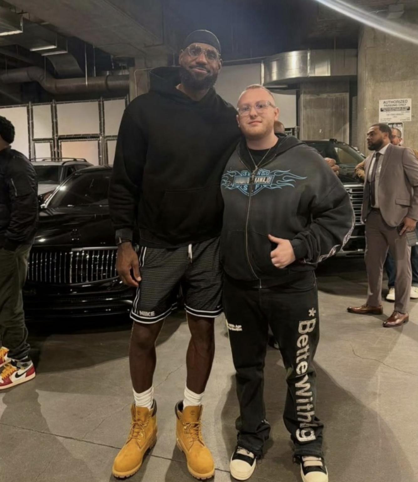 是谁这么幸运?詹姆斯昨天赛后,在停车场内被球迷们逮住,进行了合影。