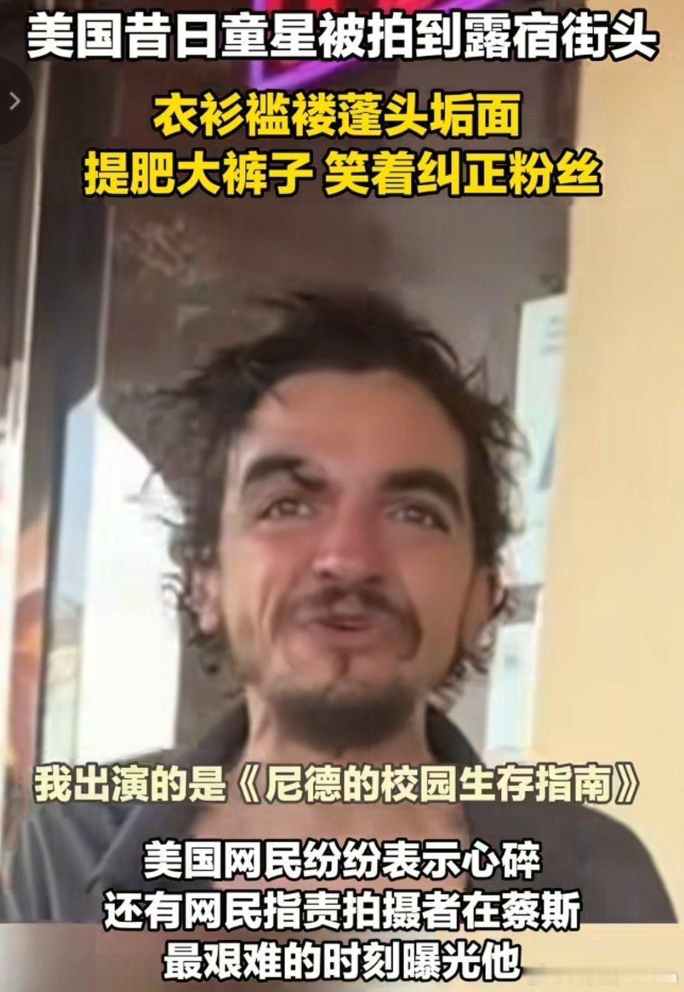 美国童星成流浪汉🔻美国斩杀线具象化了,连美国知名童星都流落街头成为流浪汉。美国网民居然指责粉丝不能把这段视频发到网上。