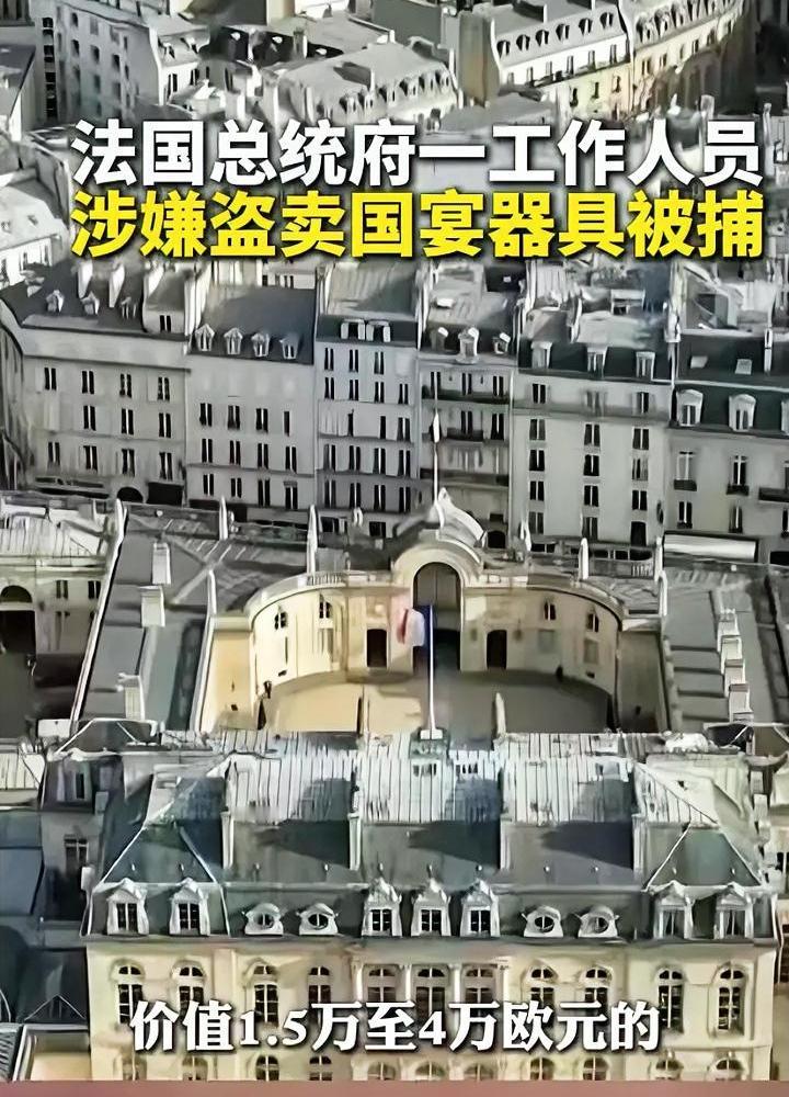 监守自盗 法国总统府银制餐具被盗 偷东西的正是银器管理员 他与另外两人里应外合 其中一人还是卢浮宫保安 被盗银器总价约4万欧元 属于法国国家遗产 就好比我们的文物古董一样 看到这里 大家有没有觉得似曾相识?