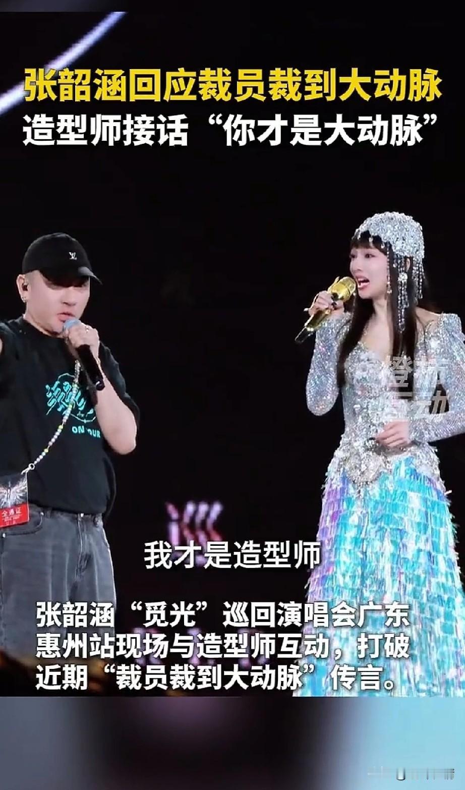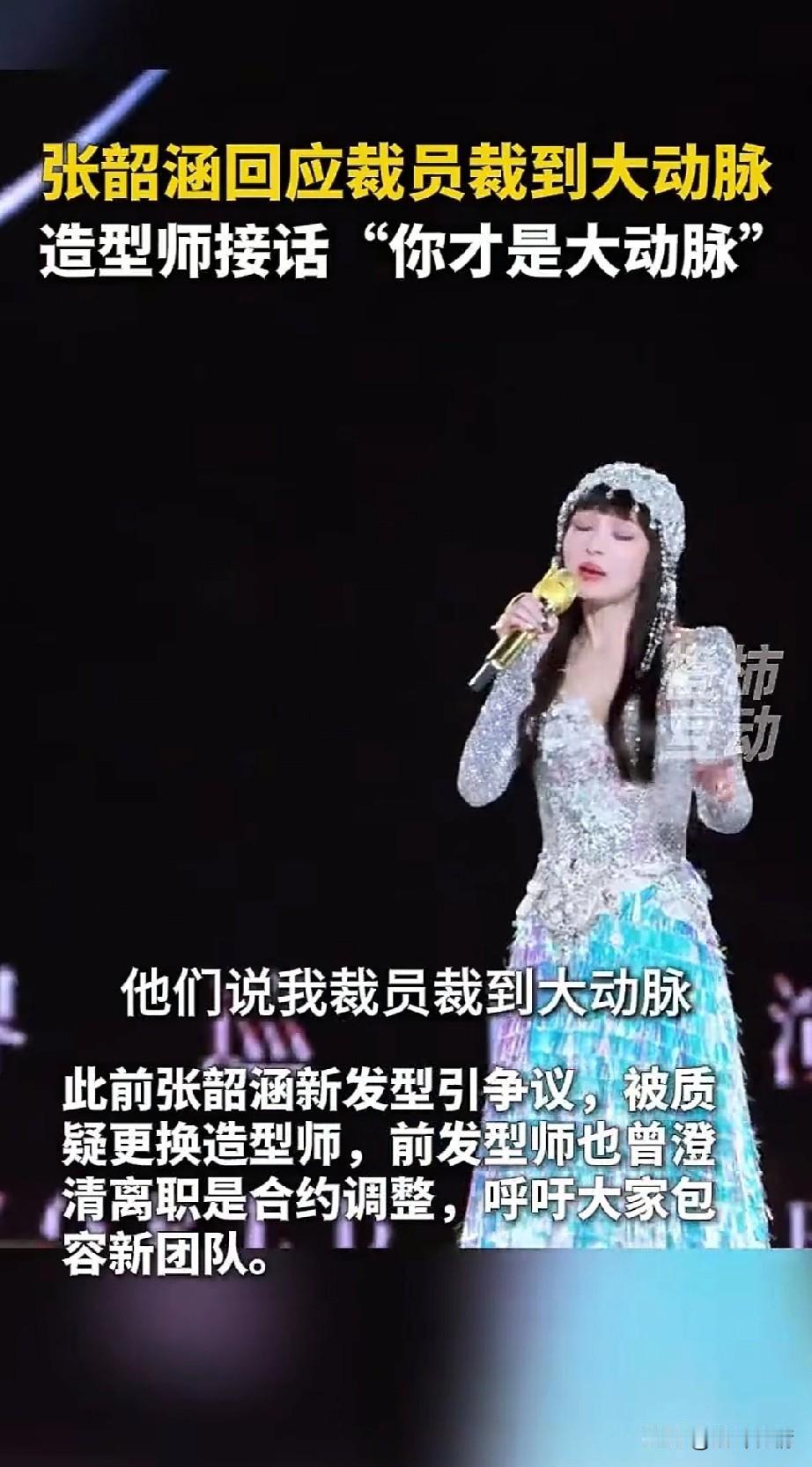 张韶涵回应裁员裁到大动脉这事了, 因为张韶涵近期的, 妆容和造型实在是太丑了, 于是就有粉丝表示, 张韶涵将自己用了数年的造型师裁了, 新来的造型师水平有限, 就整出了这么多幺蛾子, 张韶涵并没有去回应, 只是在演唱会上, 用这种幽默的方式, 回应了裁员裁到大动脉这事, 现场他的造型师也出现了, 表示自己没有被裁员, 自己只是尝试了新造型, 是粉丝要求出一些新造型, 没想到自己的创新, 居然没有被认可, 这才传出了这些谣言, 两人在舞台的亲切互动, 以幽默的方式揭露了谣言, 这才是真正的高手! 大家对于张韶涵如此方式回应裁员裁到大动脉这事怎么看? 张韶涵 张韶涵演技 张韶涵倒嗓 张韶涵砸玻璃 大家有喜欢张韶涵唱歌的吗?