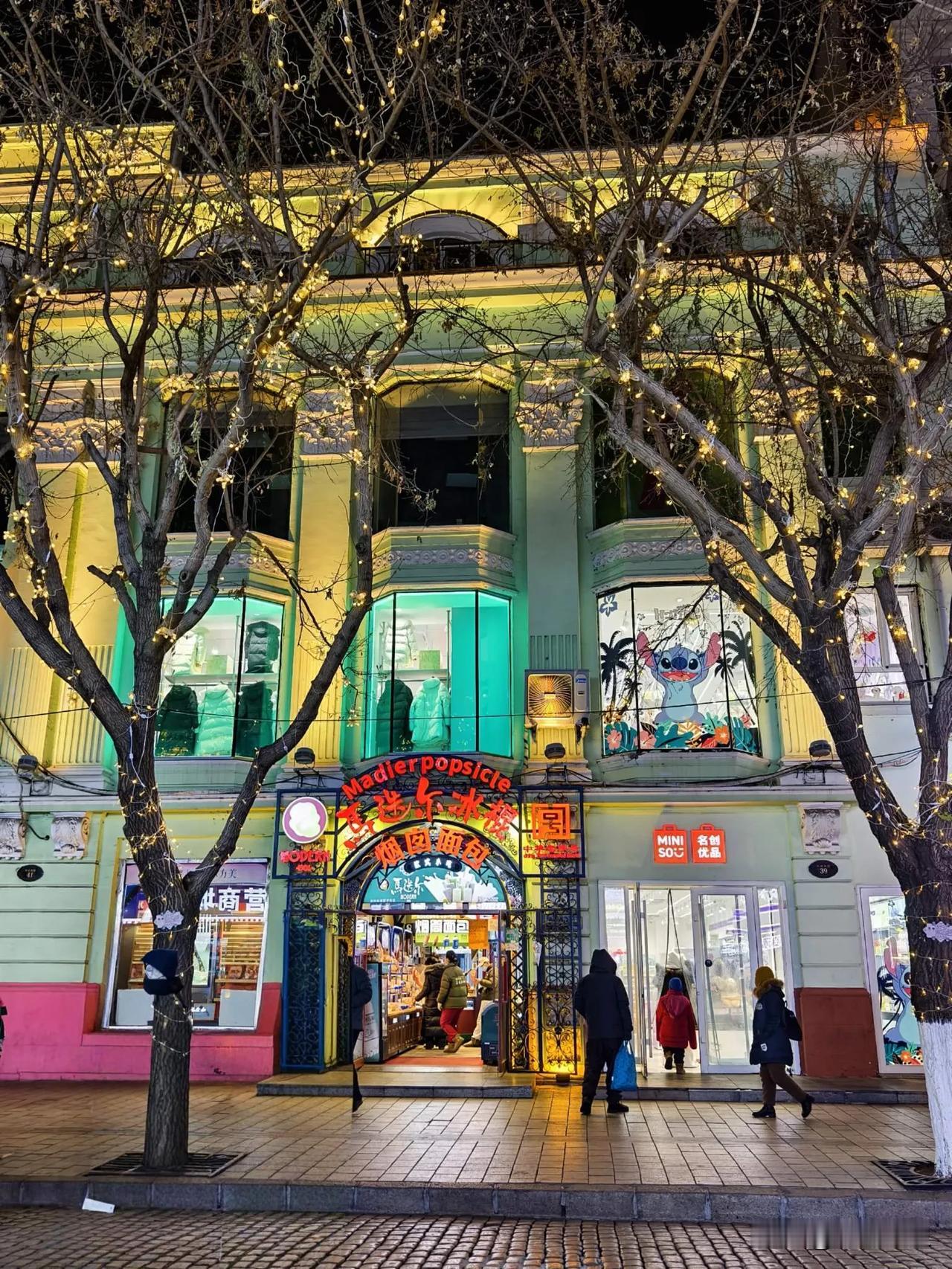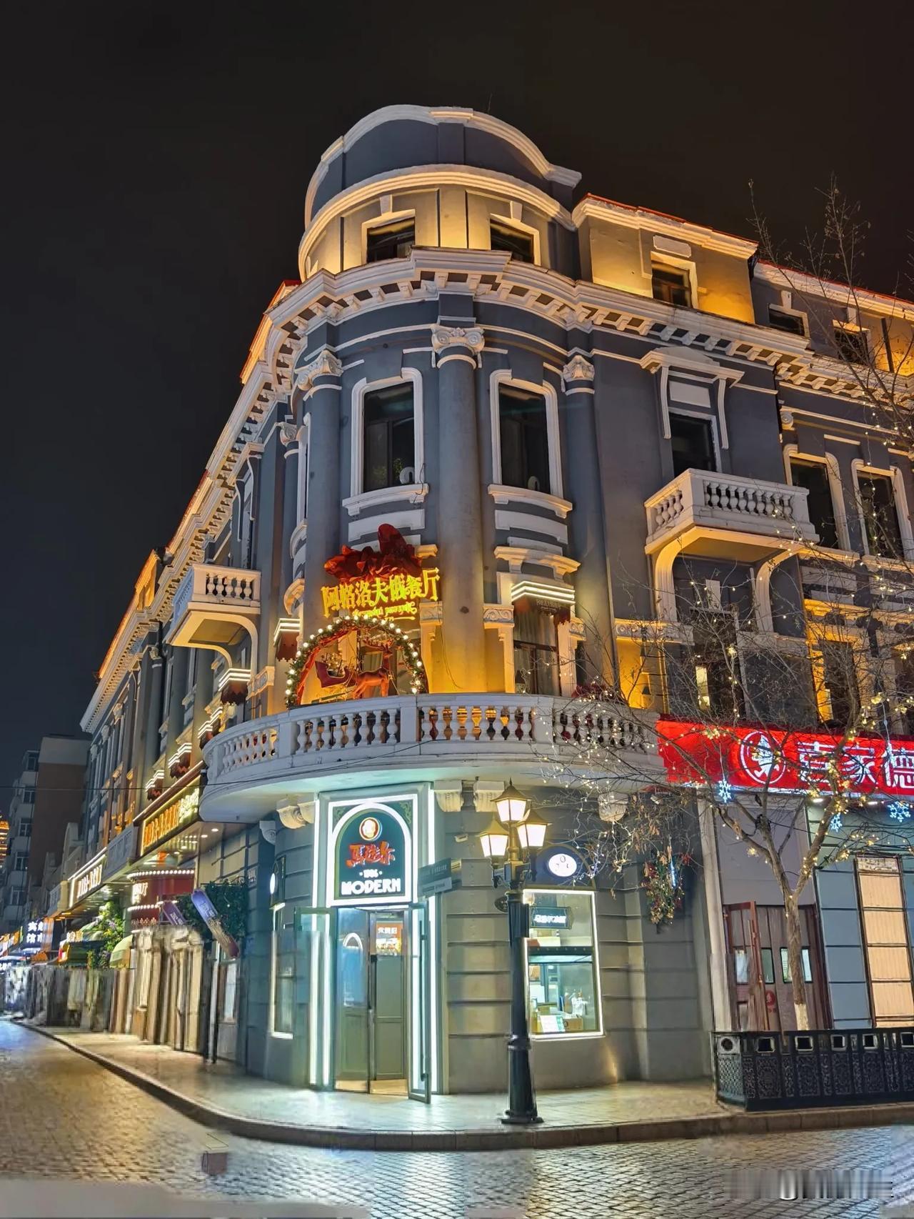从防洪纪念塔走到尽头,面包石磨亮了百年时光,俄式建筑的尖顶接住落雪,这是独属于哈