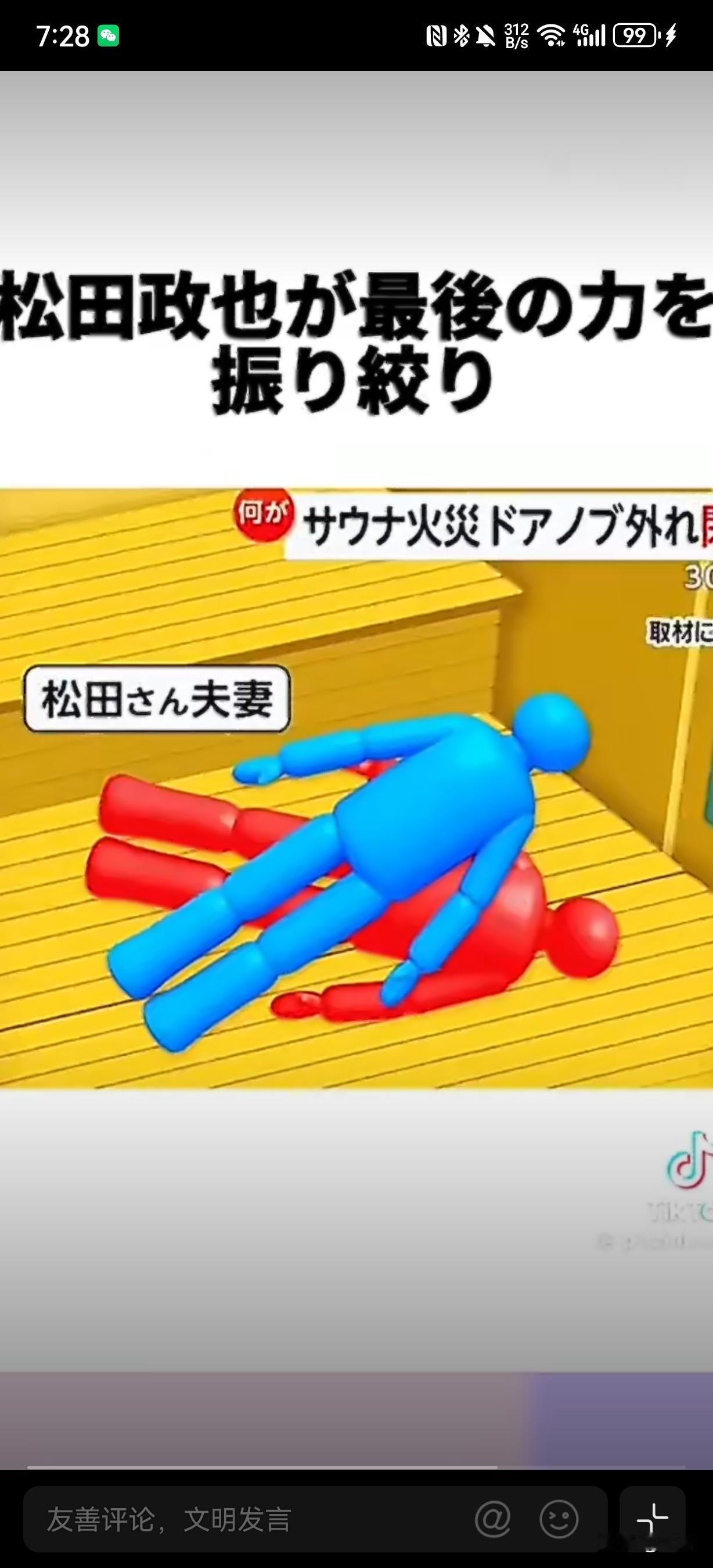 12月15日,一对日本网红夫妻(女方37岁,男方36岁),在东京一家桑拿店内离奇死亡。警方于昨日公布的初步调查结果显示,这起悲剧竟是由一连串匪夷所思的“巧合”共同促成,其诡异程度令人咋舌,不少网友直言:“若这是谋杀,简直天衣无缝。” 据调查,导致两人死亡的直接原因是长时间高温烘烤引发的脱水与热射病,但致死的关键环节却充满了人为疏忽与设备故障的叠加: 1. 逃生无门的“陷阱” 事发时,桑拿房的门把手意外脱落,导致两人被困屋内,无法从内部正常开门。 2. 隔绝外界的“真空” 在绝望中,夫妻二人曾拼命拍打玻璃门呼救,但由于隔音效果或其他原因,外面始终无人察觉。 3. 形同虚设的“救命稻草” 屋内虽设有醒目的红色紧急求救按钮,但店家老板已承认该装置纯属摆设,并未通电,根本无法发出警报。 4. 彻底缺位的“监管” 悲剧发生的关键时刻,店内恰好没有任何员工在岗,导致无人巡逻发现异常。 5. 无法抵挡的“热浪” 现场勘查发现,夫妻二人曾试图用毛巾堵住木椅散发的高温热气,毛巾甚至被烤焦,但最终仍未能挡住死神的降临。 这五大因素——门把手脱落、求救按钮未通电、员工脱岗、呼救声未被听见、物理防御失败——如同精密计算般在同一时间点爆发。如此密集的“巧合”让不少网友感到背脊发凉,质疑这究竟是一起极端的安全事故,还是一场精心策划的“完美谋杀”。目前,警方仍在对此案进行深入调查。