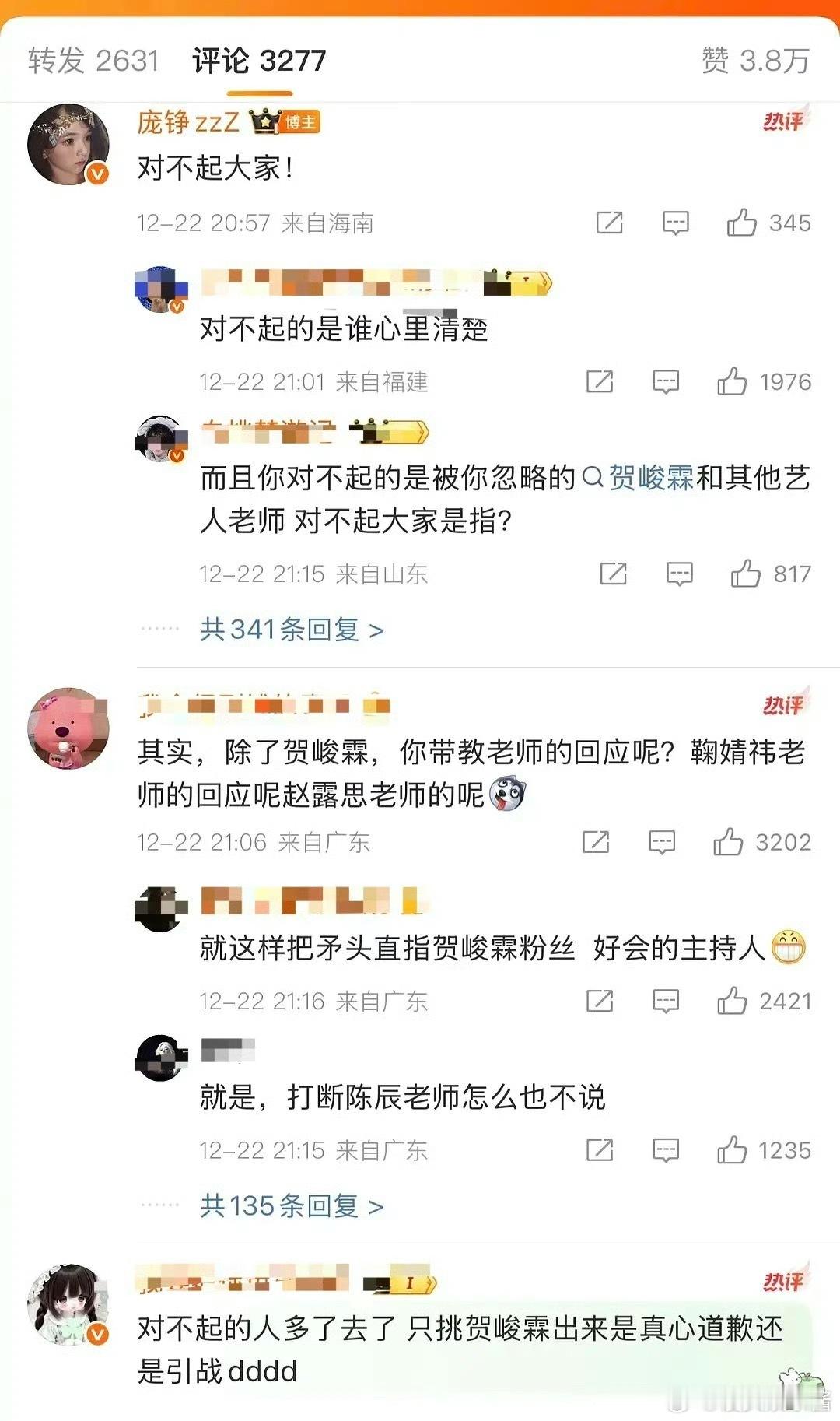 星光大赏主持人因为没有介绍贺峻霖发wb道歉,只不过粉丝好像不买账