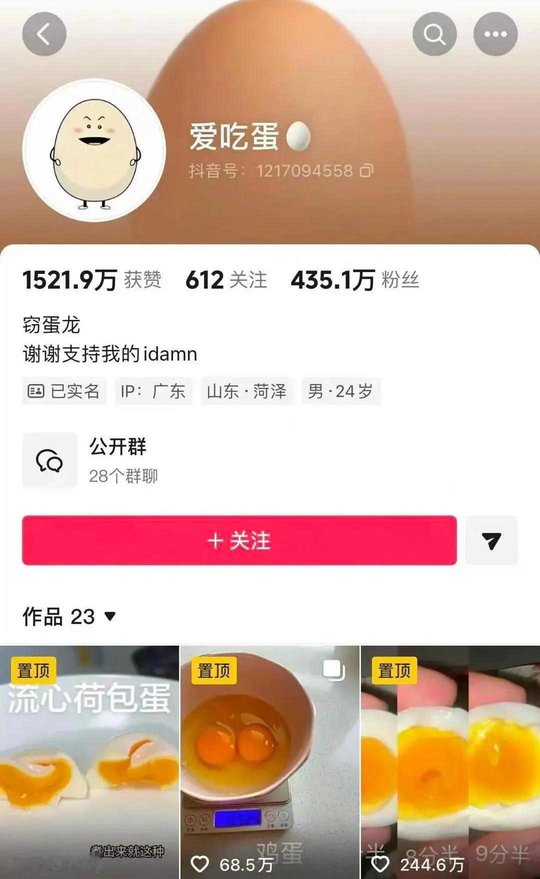 这也行!山东菏泽,一位姓冯的小伙子火了,9天圈粉400多万,还成立了公司,只因为他爱吃“蛋”。网友质疑:不可信。 鸡蛋谁不吃,有人还天天吃,但是这个冯先生却把“蛋”吃明白了,煮几分几秒,蛋会是什么火候,他掌握得门儿清。 据他自己说,之所以自己这么有把握,是因为一天吃40个水煮蛋,已经吃了5年,火候已经准确到秒了。 咱不管他的这个技能,有多少技术含量,但是挺好玩儿的,模仿也不难,一时很多人情不自禁地按照他说的去验证,于是短期内,冯先生就火出了圈。 冯先生也很有头脑,立马注册成立了公司,投了20万,自己当起了法人,经营范围是互联网信息服务、销售以及直播等技术服务。 人红是非多,冯先生的走红,也引起一些非议,有人觉得,他自曝的,自己一天吃40个鸡蛋,不可信,因为正常情况下,一天可以食用的鸡蛋量,不超过10个,吃多了会增加身体负担,对健康不利。 也有人说,或许冯先生只吃蛋白,这样吃40个也是可能的。但是即使只吃蛋白,每天至多也只能吃20个左右,吃40个也是不建议的。 我儿子每天吃鸡蛋,就是只吃蛋白,但是他顶多吃四五个,再配合吃一些鸡肉、虾肉之类的食物。 只能说,不管干什么,只要肯用心,干得比别人高一头,就有可能成功。对于爱吃蛋的冯先生所说的,一天吃40个蛋,你相信吗?
