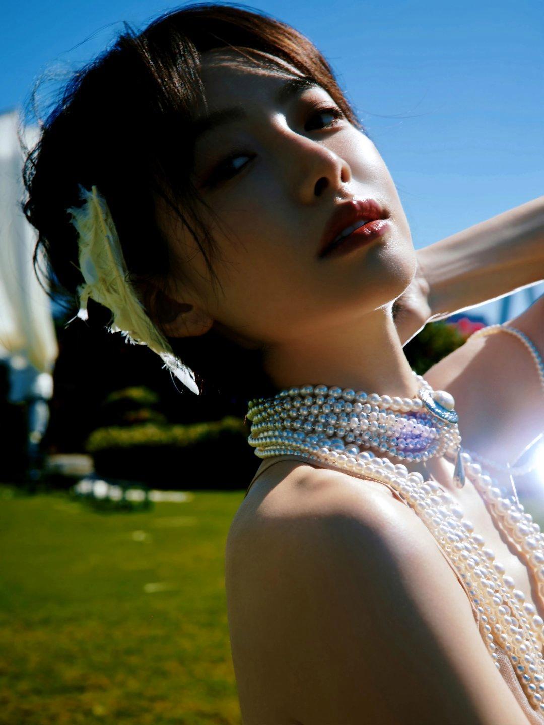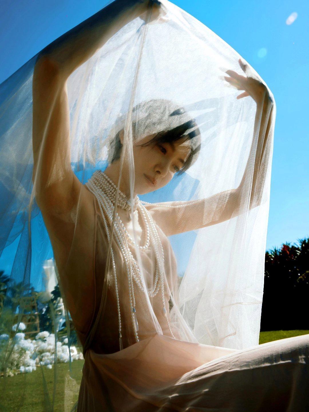 宋茜|纱影缱绻,草地赴一场春日绮梦 青翠绿茵作底,澄澈蓝天为幕,宋茜化身春日里的精灵,在草地间演绎一场浪漫的纱影缱绻。裸粉色薄纱裙身轻盈似云朵,层叠的网纱随动作轻扬,珍珠颈饰在光影下漾出温润光泽,与利落的短发碰撞出柔中带飒的独特美感。