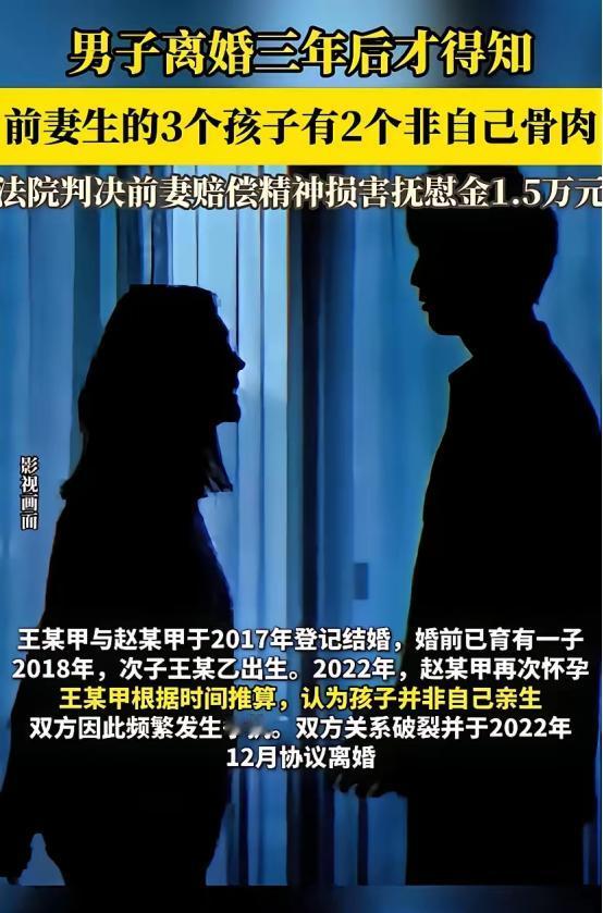 云南昆明,妻子怀上第3胎,男子一算日子不对劲。争吵之下,两人协议离婚。离婚3年后,男子带着大儿子、二儿子去做亲子鉴定,结果令男子大跌眼镜,二儿子也不是自己亲生的。气愤之下,男子将前妻起诉至法院主张精神损害抚慰金、欺诈抚养费等合计22万余元。法院这样判!   “合着这么多年,我是在替别人养儿子!”看到亲子鉴定的一瞬间,王某感到愤怒、屈辱、绝望。谁能想到,他曾呵护九年的家庭、全力抚养的两个儿子,竟只有一个是亲生的,而骗局的主导者,正是他曾深爱的妻子。   2017年,王某与赵某登记结婚,此前二人已同居生下长子。婚后第二年次子降生,一家四口看似圆满。   2022年,赵某怀上第三胎。可这次王某并没有感到喜悦,因为他核对受孕时间后,发现与同房时段完全不符。当他拿着日历质问妻子时,赵某却始终含糊其辞,从未正面回应。   怀疑的种子一旦种下便无法抑制,夫妻俩争吵不断,家成了战场。2022年12月,二人撕破脸离婚,约定赵某净身出户并抚养次子,王某抚养长子,互不付抚养费。   离婚三年间,王某心中的怀疑不减反增,街坊邻里那句“老二不像你”的闲言碎语更是让他夜不能寐。   2025年8月,他再也难忍疑虑,带着两个儿子直奔鉴定机构,只为求一个真相。 结果令王某大失所望,不仅三胎不是亲生的,连养了多年的二儿子也不是自己的!   原来,九年婚姻,他竟替别人养了四年儿子。“我简直就是个笑话!”王某当场崩溃。冷静后,他决定讨回公道,2025年11月,王某将赵某告上法庭,索要22万赔偿。   法庭上,赵某承认自己婚内出轨。法院认定其违背夫妻忠实义务,构成欺诈性抚养,但考虑到她离婚时放弃财产、需独自抚养三个孩子并照顾患病父母,仅判决其支付4万余赔偿。   判决一出全网哗然,网友纷纷替王某鸣不平:“近十年的背叛,4万的代价也太低了!”对王某甲而言,4万元根本弥补不了他失去的婚姻信任、情感寄托与尊严。   此案撕开了婚姻最丑陋的一面:忠诚是家庭底线,绝非道德口号。赵某的所作所为,最终导致家庭破碎、声名狼藉,人财两空的下场。   最无辜的是,三个孩子将在大人的错误中长大,或许有一天,还要卖你对自己身世带来的风暴。一纸判决可以了结官司,却斩不断这场背叛种下的、绵延多年的苦果。   对此你有什么看法?欢迎在评论区留言讨论。婚内出轨 离婚案件亲子鉴定   信息来源: 潇湘晨报2025-12-22|判了!男子离婚3年发现三个孩子,有二孩非亲生 文|墨海 编辑|史叔