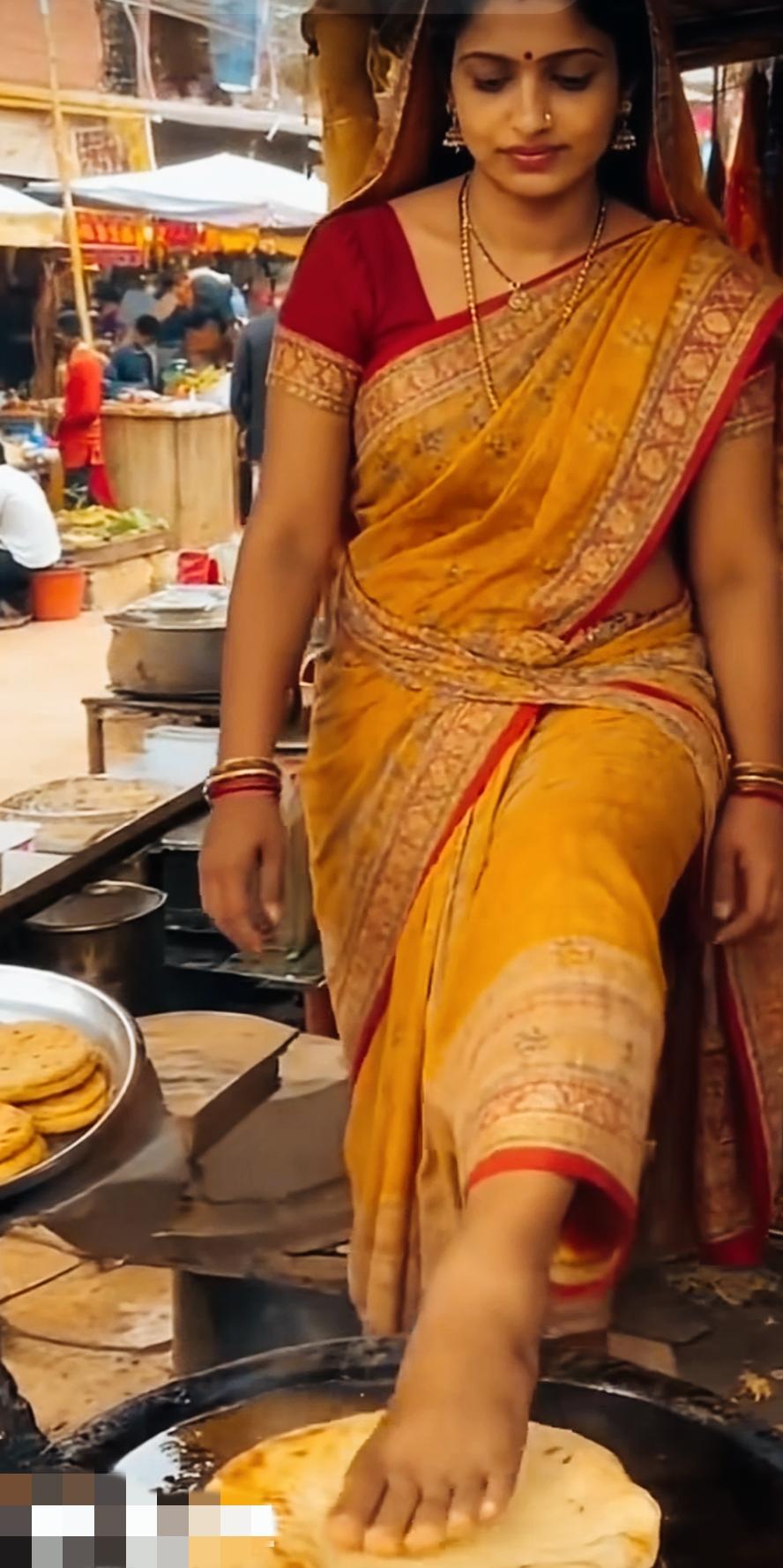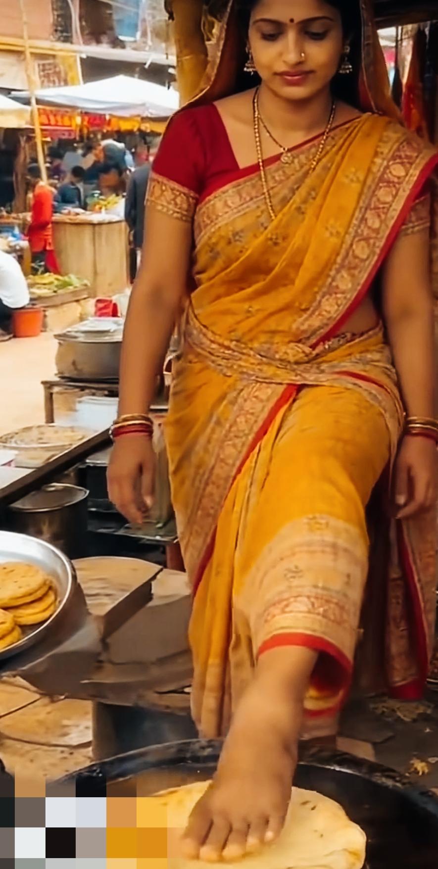 印度女子用脚烙饼,这是不是高手啊? 一只脚作为支撑脚,一只脚烙饼,这样能保持平衡也不简单吧? 这烙饼的姿势是不是很厉害啊?