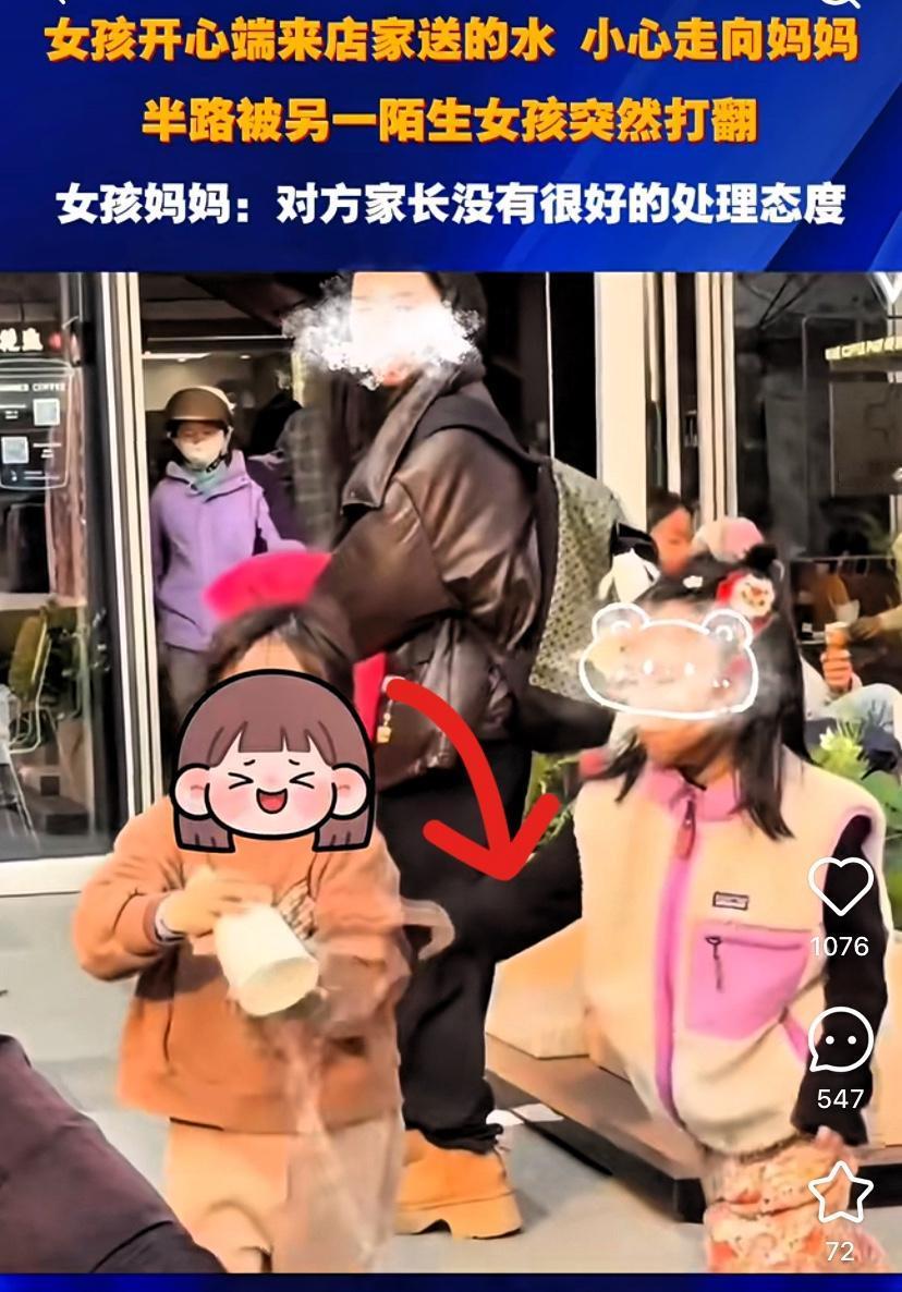 绍兴商场里的这杯水, 真的戳中了无数家长的心! 一个小女孩第一次鼓起勇气向陌生人要到水,兴冲冲跑回妈妈身边炫耀“阿姨给我了”,刚得到夸奖就被同龄女孩故意打翻,当场吓哭。更让人寒心的是,肇事女孩的妈妈全程看着,只喊了孩子一声就拉着人扭头就走,连句安抚都没有。 受害女孩的妈妈没有当场吵架,先抱着女儿平复情绪,之后直接报警——她后来采访说,要的从不是赔偿,就是想给孩子一个交代:做错事就得负责。现在警方找到了肇事母女,双方完成了当面道歉,可网友的讨论却没停。这道歉太被动了!要是没有报警、没有网友关注,这对母女恐怕早就把这事抛到脑后了。 最扎心的是受害女孩的反应,第二天醒来还问妈妈“小姐姐为什么要这样”,甚至说“她妈妈没教她不能随便欺负人”。孩子捧着的哪里是一杯水啊,分明是第一次独立交流的成就感,是对世界的信任,结果就这么被轻易打碎了。 其实孩子不懂事不可怕,可怕的是家长的“逃避式教育”。当时要是肇事妈妈能停下来,让孩子说句对不起,再帮着重新要一杯水,这事根本不会闹大。可她的逃避,等于在告诉孩子“犯错不用担责,伤害别人也没关系”。 好在受害女孩的妈妈做得特别好,先安抚情绪再走合法途径维权,既保护了孩子的安全感,又教会她“遇到不公要勇敢站出来”。这一杯水打翻的不仅是孩子的喜悦,更照出了两种家庭教育的差距——一种教孩子勇敢尝试、尊重他人,一种教孩子逃避责任、漠视感受。 你们觉得这种“被逼出来的道歉”能让孩子真正认错吗?遇到这种事,你会当场追责还是选择算了?欢迎在评论区说说你的看法!