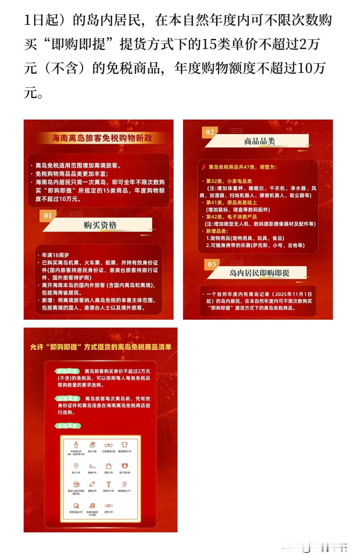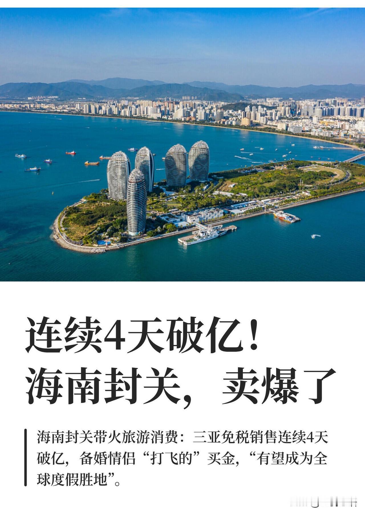 海南封关这波热度也太猛了! 三亚免税销售额连续4天破亿, 这数据直接炸了! 新增了宠物用品、乐器这些品类, 小家电和数码配件也扩容了, 选择多到挑花眼~ 备婚姐妹直接打飞的冲黄金, 每克比内地便宜两百多, 叠加消费券省出一大笔! iPhone、华为优惠力度拉满, 榴莲价格腰斩排队疯抢,这羊毛谁能忍? A股海南概念股也跟着大涨, 旅游预订量翻倍, 不管是国内游还是入境游都超火爆。 不得不说,封关后的海南也太香了! 政策给力、价格真香, 妥妥的度假+购物天堂, 已经开始盘算元旦冲一波了~ 海南封关