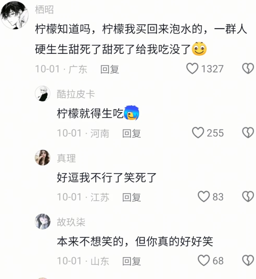 柠檬知道吗,柠檬我买回来泡水的,一群硬生生给我吃没了
