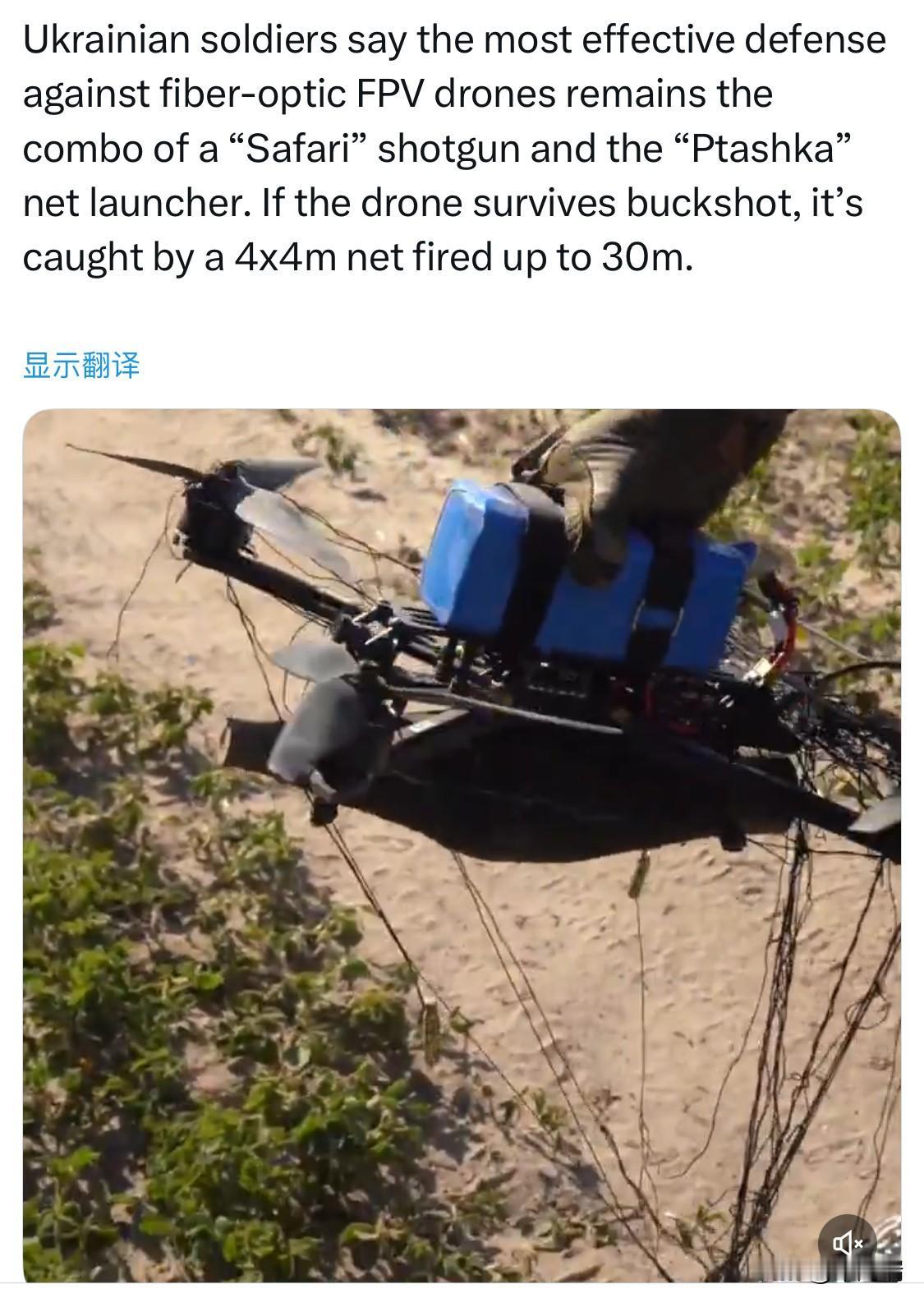 俄军在2024年中后期开始大规模使用光纤无人机,特别是在库尔斯克地区和顿巴斯地区的城市巷战中。这些无人机成功摧毁了乌军的M1艾布拉姆斯主战坦克等重型装备,并对乌克兰阵地构成了持续威胁。乌克兰方面报告称,在一些战区,俄军70%以上的FPV攻击都使用了光纤无人机,且难以防御。 当前在乌克兰战场,乌军对应采取了结合使用“Safari”霰弹枪和“Ptashka”网枪是对抗光纤 FPV 无人机最有效的防御手段。 光纤 FPV 无人机对抗电子战干扰几乎免疫,因为它们通过光纤电缆进行控制,无法被干扰或阻断信号。唯一的对抗方式是物理(机械)摧毁。 “Safari”霰弹枪 霰弹枪发射一片弹丸,形成一个锥形散布面,增加了击中快速移动的小型无人机的概率。有效性取决于操作员的训练水平。 “Ptashka”网枪 网枪是一种可重复使用的武器,发射一张 3.5 x 3.5 米(或 4 x 4 米)的网。这张网可以在空中展开,缠住无人机的螺旋桨,迫使其坠落。网枪的射程可达 25-30 米。 这些方法被视为应对先进技术挑战的低成本、实用的最后防线。
