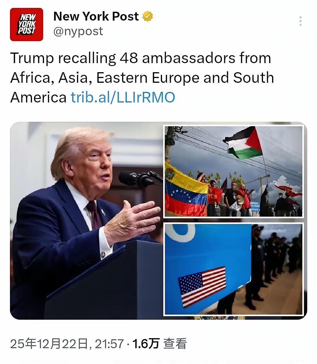 曾经讽刺非洲为“粪坑”的特朗普,现在还是看不上非洲,不想美国浪费钱在非洲大陆上,竟然直接召回25国驻非洲大使。 12月22日,《纽约邮报》报道:特朗普召回48国大使,此次召回的48国大使,非洲占了25个,另外,来自亚洲有11个国家,这些国家几乎都是亚洲最贫穷的国家,剩下的则是其它地区的穷国或者小国。可以看出,特朗普正在践行自己的理念,美国的钱不能花费在那些无足轻重的国家,而应该花在能给美国带来收益的国家身上。 网友:这不是又给印度留下了空间和机会?印度又可以大呼朋友遍天下了。 非洲的贫穷落后,是与非洲的一部分太过自私自利的人有关,他们都是为了一己私利,不顾国家和人民的利益,把国家搞得一团糟。 这些国家喊不喊美国是超级大国,美国都不会给钱,也不会影响美国到底是不是超级大国这个事实。