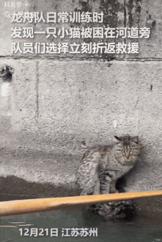 竟然上了人民日报了!江苏苏州,一只小猫被困在一小块石头上,石头太小了,它只要一动就会掉进水里。这时,有一支正在日常训练的龙舟队发现了它。 本来龙舟队都划过去了,但是看到这只被困的小猫,他们又掉头回来了。开始有一个人想用手抓小猫,但是小猫不配合。他们也没有经验,不敢贸然上手。后来,只能用船桨,开始两个人配合想把小猫托上去,但是两个船桨托得不稳,第三支船桨加入,一起把小猫送到岸上。小猫跑走了。 真不知道这只小猫是怎么到那块小石头上去的,猫应该会游泳吧。有的网友说,猫和狗掉水里,都会游泳。 幸运的是,它正好被龙舟队发现了,把它救上去了。小猫也是有人“托举”的动物了。 近年来人们的生活水平提高了,也有多余的能力照顾小动物了。看到流浪猫、流浪狗总有好心人给它们喂食,甚至收养它们。这才是人和自然的和谐相处。我们不仅救助人,也会关爱动物和植物。