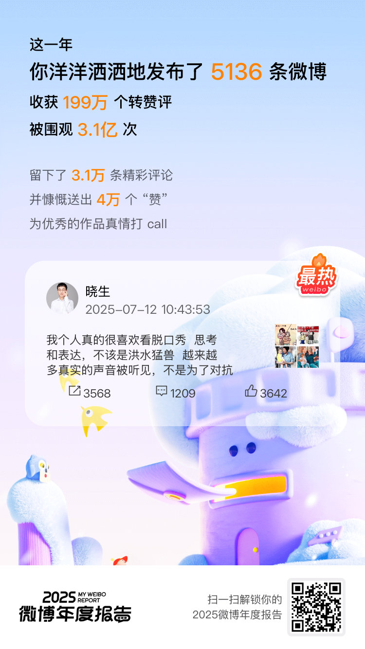 捷报喜报!2025我的V影响力力持续在线:金V成就闪耀328天,橙V成就点亮37天! 感谢家人们一路力挺!来看看你的年度总结吧~点击开启>>2025微博年度报告 微博年度报告微博之夜
