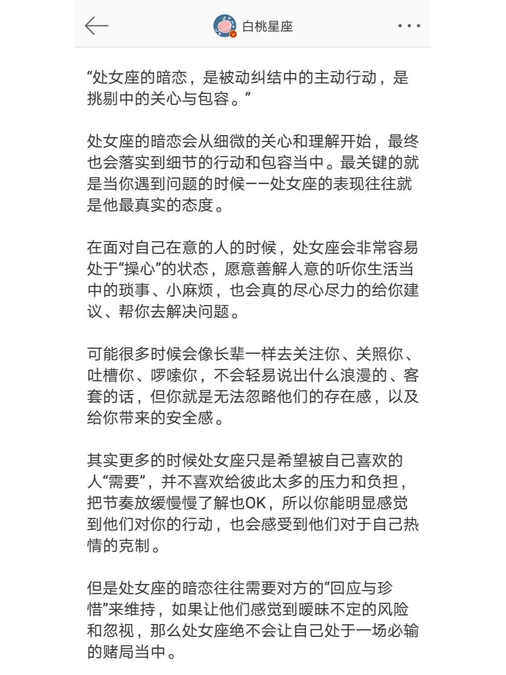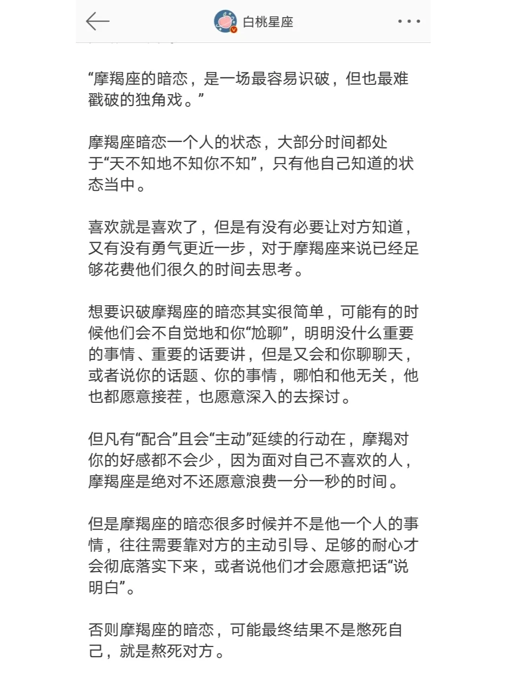 金牛座 的暗恋可能并不擅长浪漫,但却愿意用真心“补拙” 处女座 的暗恋是被动纠结中的主动出击,是挑剔中的关心与包容 摩羯座 的暗恋是一场最容易识破,但也最难戳破的独角戏
