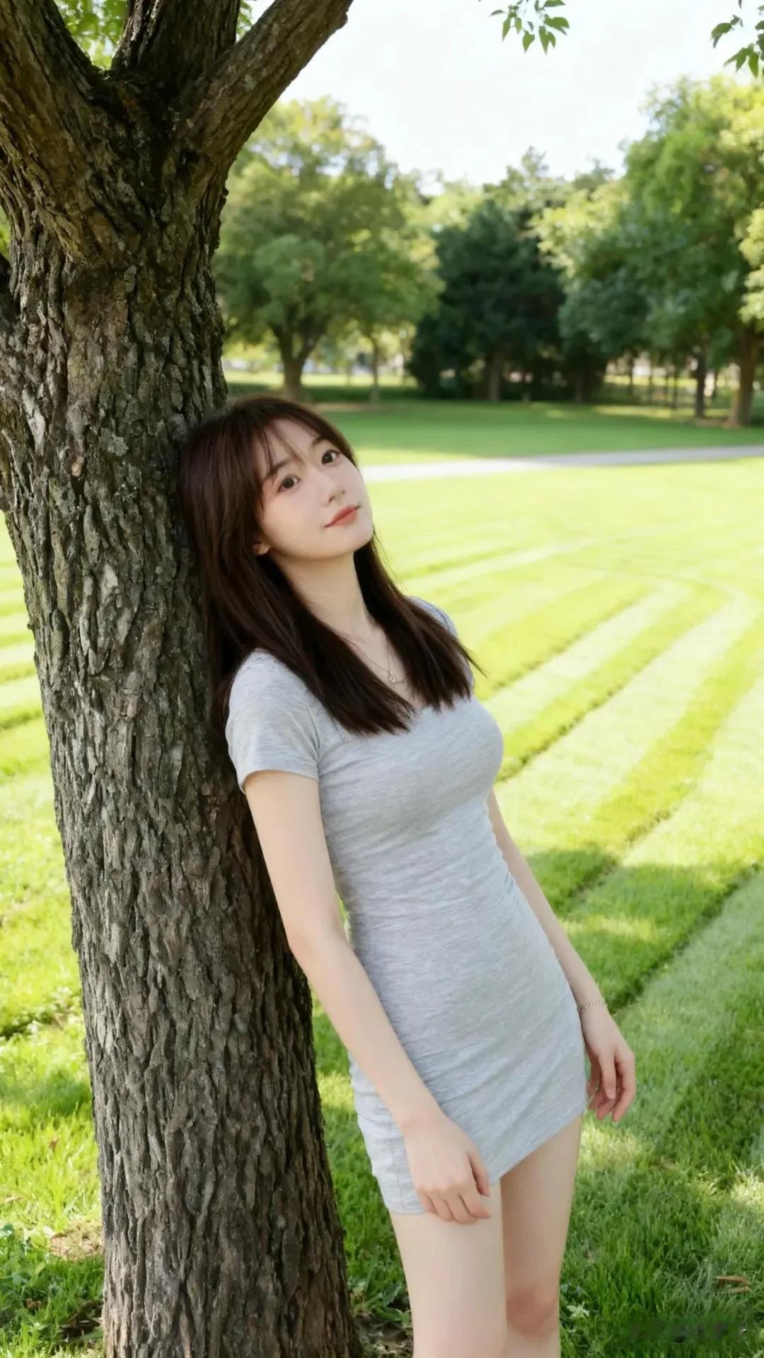 阳光下的温柔女孩,享受自然的美好时光。🌞🌿💕