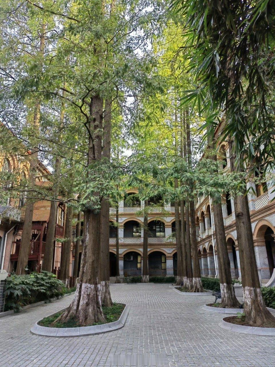 华东政法大学40号楼!水杉很美,不论在土上,还是水里。照片中左侧是宿舍楼,正前方和右侧是行政办公楼。好好拍照的一年