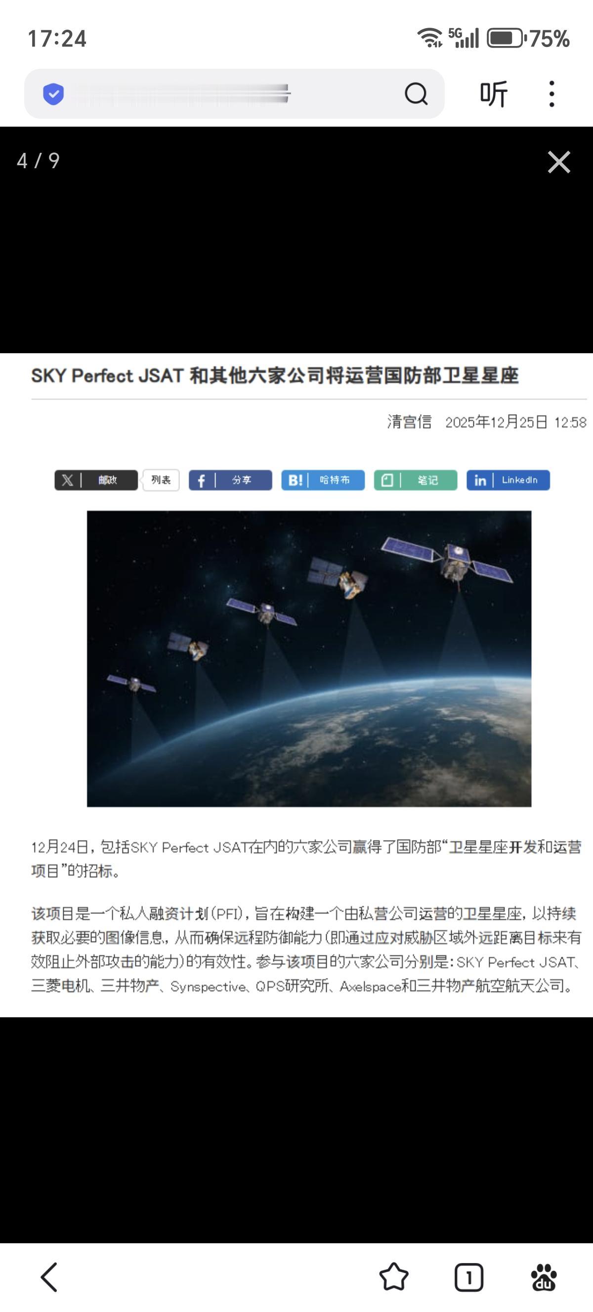 日本将部署卫星监视中国航母编队,Naval news在报道12月上旬日本航空自卫队出动16架F-2战斗机模拟攻击中国“辽宁”号航空母舰编队时指出,日本应对中国航母还有许多其他挑战需要解决,例如,对中国海军舰艇和飞机进行持续监控需要覆盖整个太平洋的雷达站。然而,与东海不同,太平洋没有密集的岛链,这限制了地面雷达系统的覆盖范围。Naval news认为日本可能选择扩大 E-2D 空中预警机的机队。 【图2】iQPS-SAR14号卫星拍到的雷达影像,费城的BB-62“新泽西”号战舰。可以从影像上数到六根高高昂起的主炮炮管。 【图4】在12月24日,日本防卫省正式宣布了“卫星星座建设与运营事业”的中标结果。这标志着该计划从规划正式进入了落地实施阶段。日本防卫省决定由包括 SKY Perfect JSAT、三菱电机、九州先锋太空研究所(iQPS)、Synspective 等在内的 6 家企业联合体负责该项目。目标是在 2020 年代末期建成由 30 颗“合成孔径雷达”(SAR)卫星组成的星座,从而创建一个能够观测地球上任何位置变化的新型系统,通过民间运营的卫星星座确保“防区外防卫能力”(Stand-off Defense),实现对目标(特别是海上移动目标)的持续、高频次监控。 【图8】iQPS计划建造一个36颗卫星的星座,具备对地球任意地点10至20分钟的重返间隔探测能力。 根据日本防卫省的《防卫计划大纲》及 2025 财年预算案,建立这个星座的首要军事目标就是: 捕捉移动目标:中国海军舰队在广阔的西太平洋活动,传统卫星重访频率低,容易跟丢; 引导远程导弹:日本正在开发的“12式岸舰导弹增程型”等防区外武器,需要实时的卫星数据来修正目标位置。