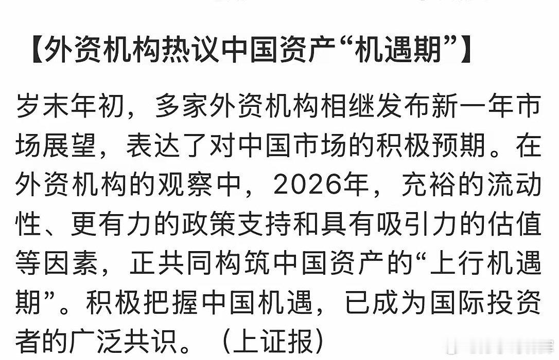 有上海证券报报道,外资投资中国股市已经形成了共识“机遇期”。投资A股一旦过了“机