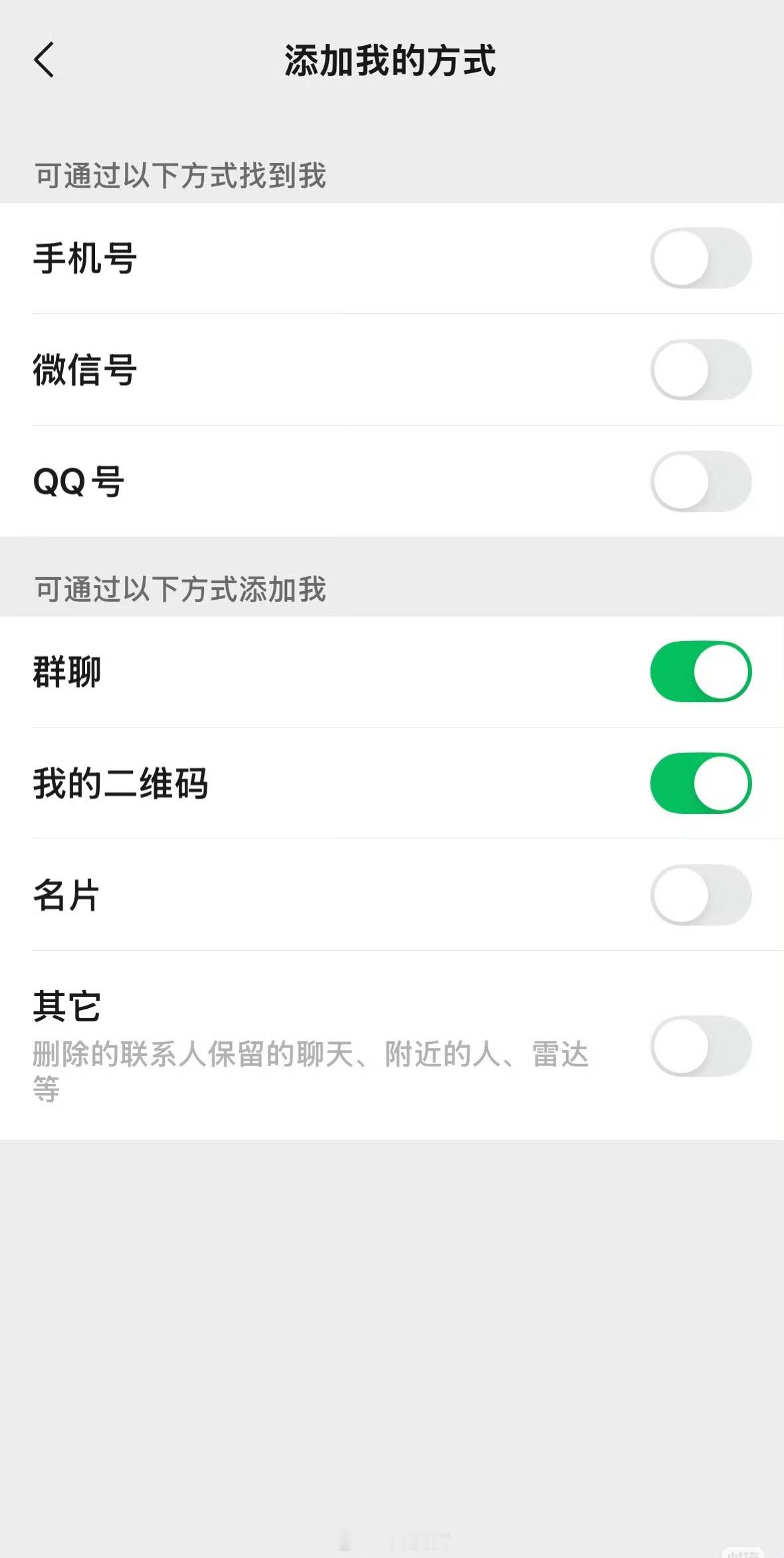微信更新后最利于单删的功能更新微信后就能看到,在添加方式里面,不打开其它,删除别人后,别人加不回来我都分不清拉黑和删除的区别,一般都是直接删除