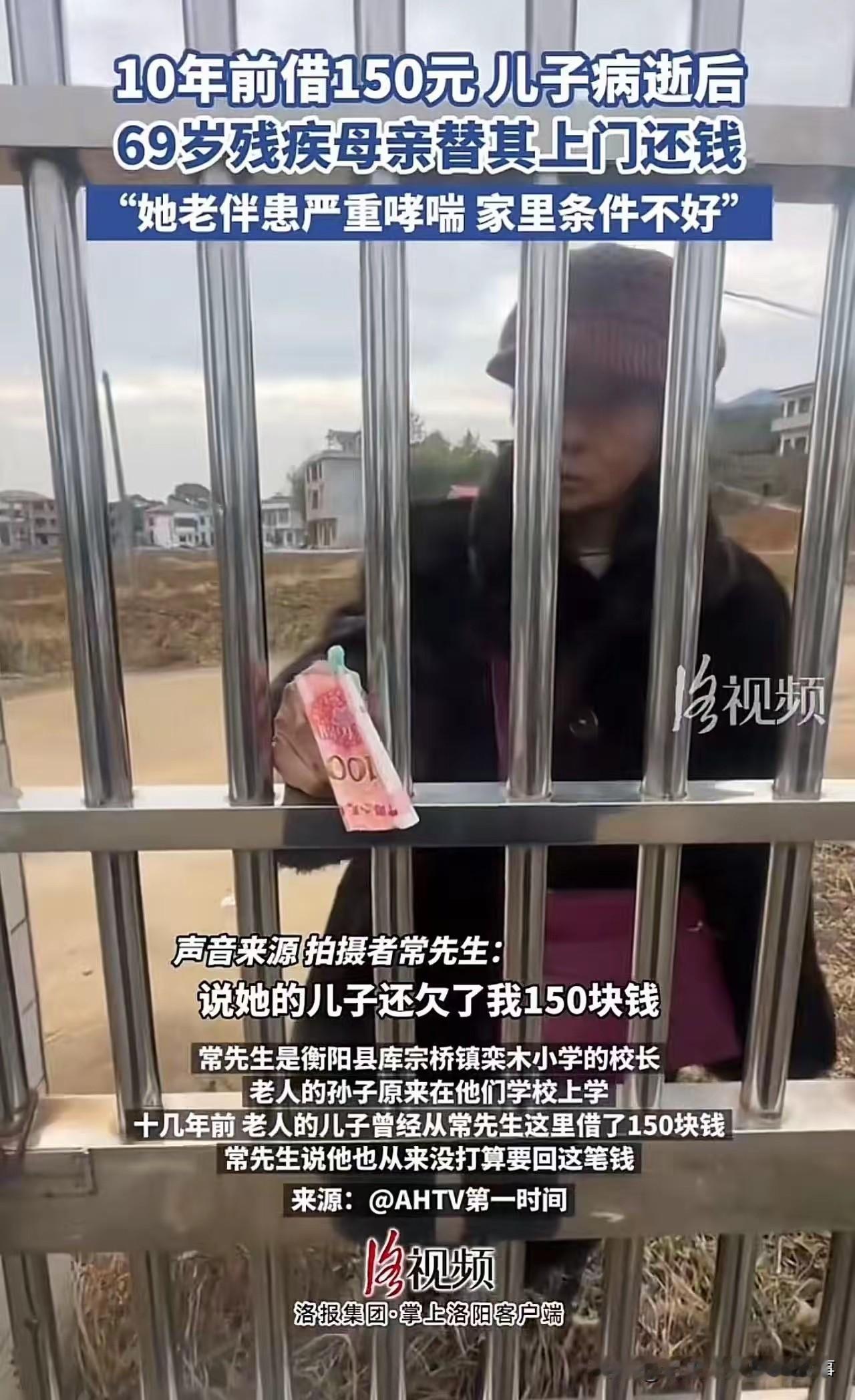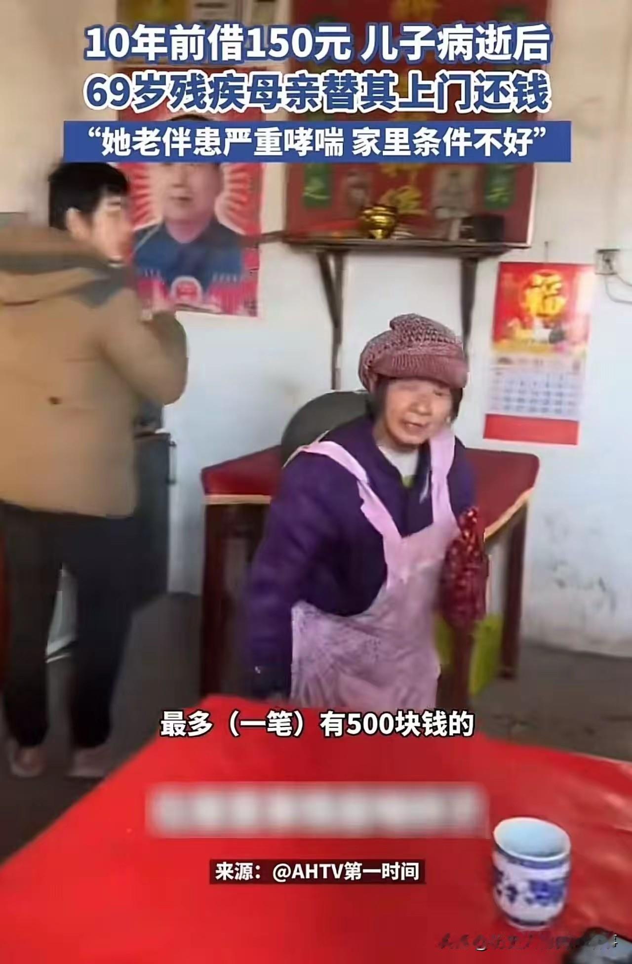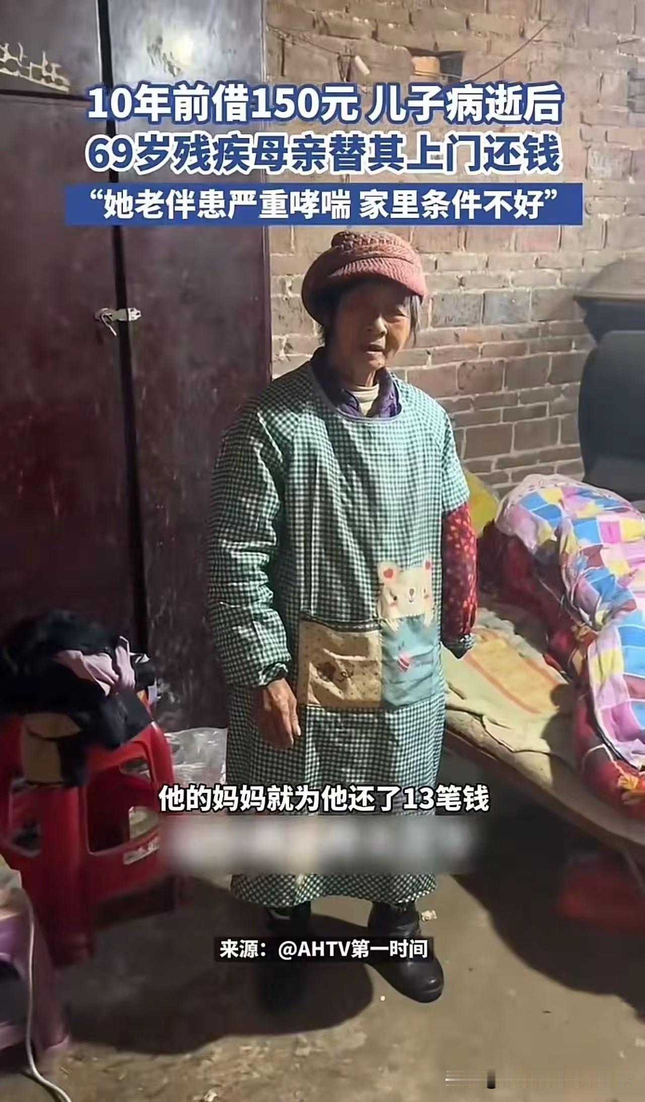 湖南衡阳,一位69岁的残疾母亲,用一只手撑起了儿子的“身后债”。 儿子不幸离世,留下13笔欠款,老人没有逃避,而是靠着打零工、做手工的微薄收入,一笔一笔慢慢还清。 “人死了不能欠来世债,替他还了我才安心!”朴素的一句话,道尽了中国人刻在骨子里的诚信与担当,看哭无数网友。 这才是最动人的人间大义!69岁残疾母亲,替去世儿子还清所有欠款。 没有惊天动地的壮举,只有一只手日复一日的辛劳;没有豪言壮语,只有“还了才安心”的执念。 她用行动告诉我们:诚信,无关年龄,无关境遇,是一个人最珍贵的底色。网友怒赞:老赖们真该好好学学!亲人欠债 劳碌一生的父母 母亲医疗费 素材来源于网络,侵权删除。