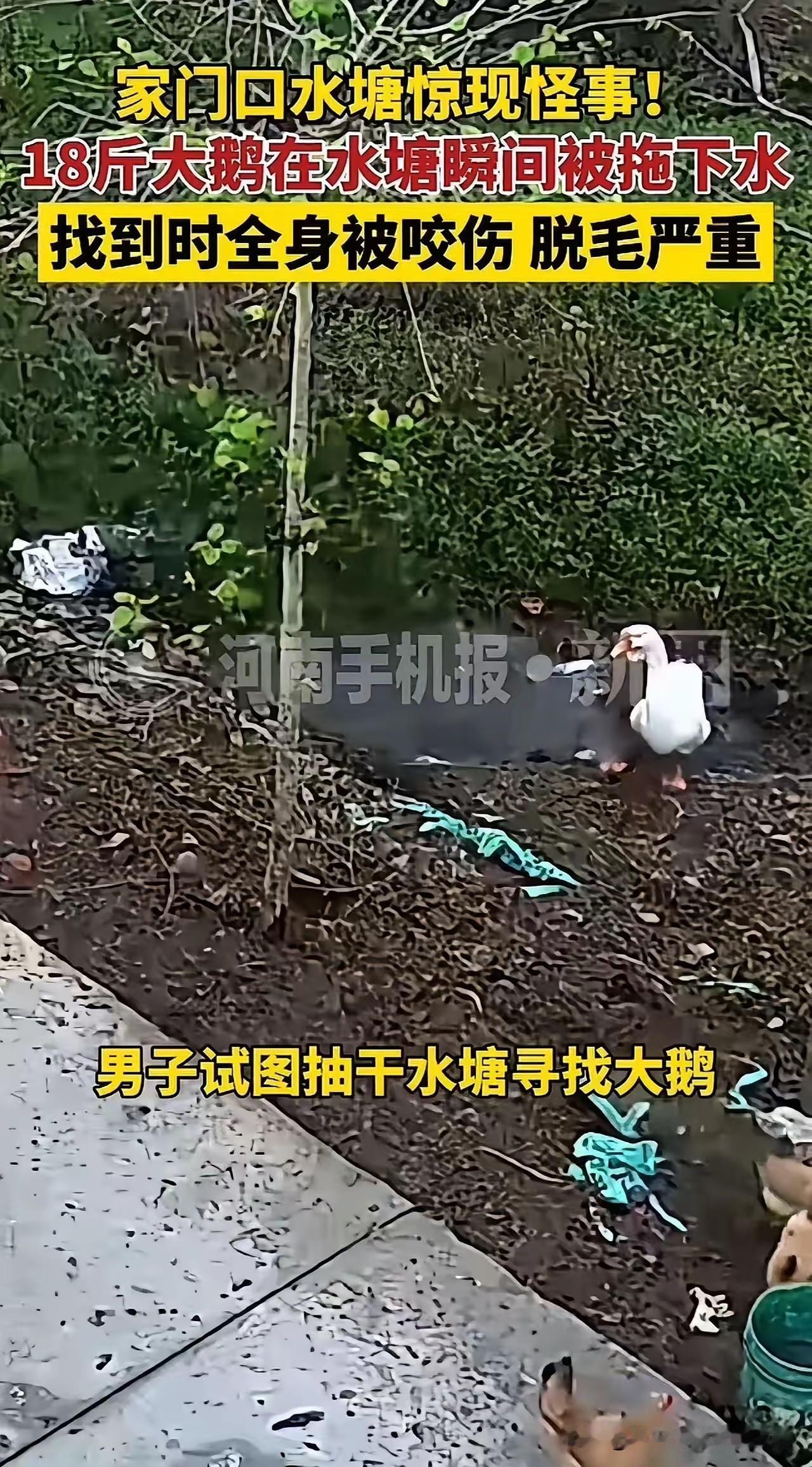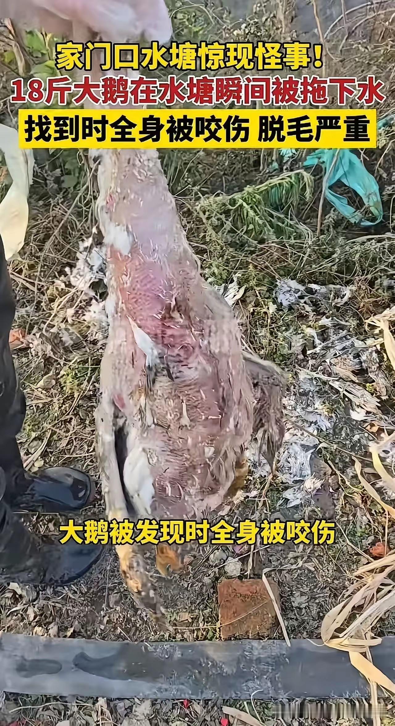 18斤大鹅被拖入水塘遇害,抽干水没见凶手,4个疑点细思极恐! ▫️ 核心谜团:监控拍黑影拖拽,尸体带撕咬伤,抽干水塘+刨半米淤泥却空无一人 ▫️ 全村恐慌:已丢超5只鹅,邻居家找回的只剩骨架和鹅毛,夜间无人敢近水边 ▫️ 真相猜想:巨型黑鱼(拖野鸭下水常客)、水獭(撕咬不吞食)、鳄龟(外来物种咬合力惊人)三足鼎立 花千元抽水寻凶,直播全程真实无造假,却越查越迷 。是水生生物藏泥逃生,还是水草缠绕溺亡后被啃食? 这起怪事不止是家禽失踪,更是乡村水边安全的警钟——常年不清淤的水塘,到底还藏着多少未知风险?杀鸡杀鹅 杀只鹅带回家 现杀大鹅 素材来源于网络,侵权删除。