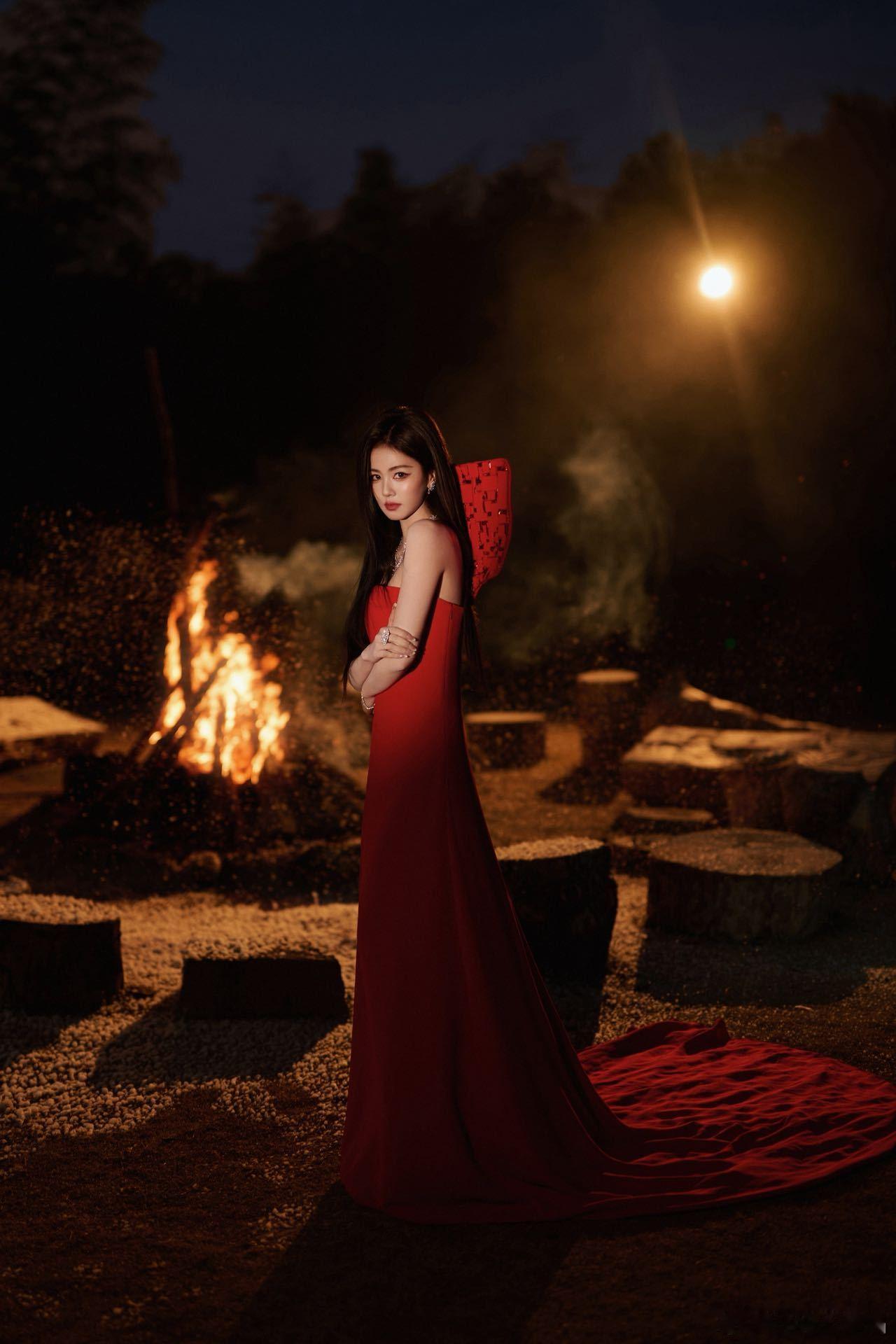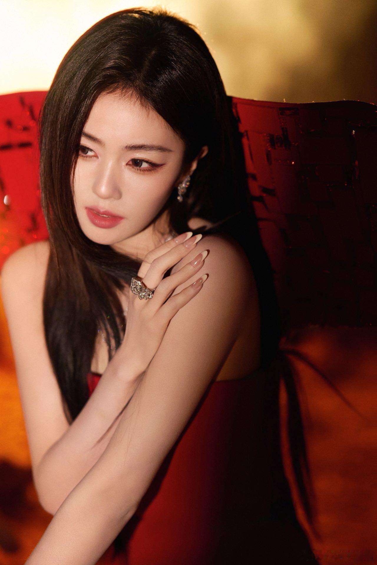 白鹿元旦新拍写真,穿上了一套 Stéphane Rolland 2025 秋冬高级定制系列红色礼服 ,正红抹胸长裙贴身剪裁,完美勾勒优雅曲线,拖尾设计更添华丽气场;背后几何红饰打破纯色单调,硬挺廓形与柔滑裙摆形成“刚柔并济”的视觉张力。白鹿26年首套高定造型