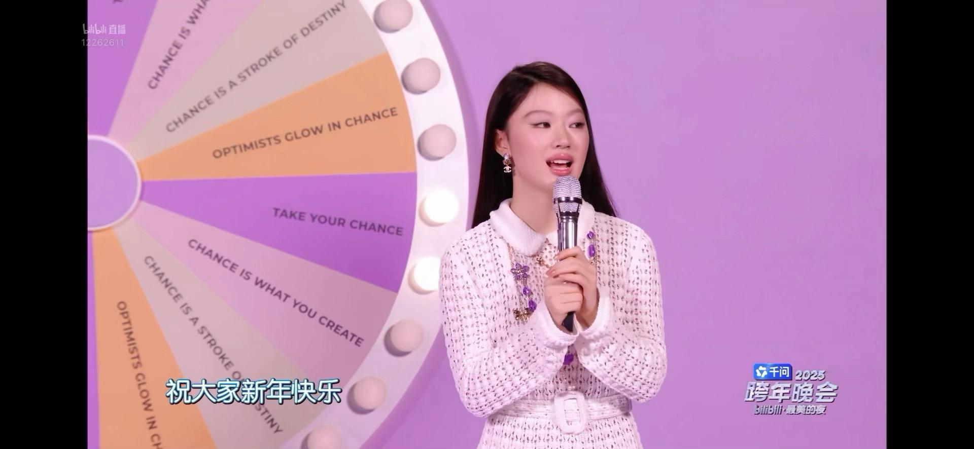 昨晚B站跨年晚会的紫色梦幻舞台至今难忘!单依纯指尖按下紫色幸运按键的瞬间,光影流转间切换出漫天紫色彩带,配合改编歌词里的“把握你的幸运”,每一帧都在诠释“幸运不是偶然”的浪漫仪式感。在这场神秘紫的演出中,她把香奈儿chance邂逅梦幻香水如此巧妙地融入进各环节,包括幸运转盘的色彩、把握机遇的主题概念与歌词里的香气等,还有她身上穿的香奈儿服饰,整个舞台都变得时髦起来。新的一年,愿我们都能像单依纯的舞台一样,以努力为底色,把“偶然幸运”变成“必然美好”。单依纯紫色舞台接好运