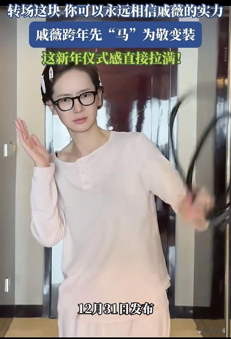 跨年夜在家明星也要给大家制造点惊喜,戚薇在自家豪宅, 也拍起了短视频, 全场这一块, 你可以永远相信戚薇的实力, 上一秒他还穿着家庭版的卫衣, 带着黑色眼镜,头上还扎着卡子, 手里拿着一根皮鞭, 不知道她的老公平时是不是很喜欢, 下一秒镜头一转, 她就穿上了SM的专业套装, 手持皮鞭, 向着前面走来的, 瞬间感觉高大上了不少, 还露出了模特才有的表情, 这好身材展示的淋漓尽致, 不过这一身儿也暴露了她老公的癖好, 看来戚薇玩的也太胆了, 不过,不得不说, 戚薇这先马为敬的变装, 还着实有些惊艳, 这新年仪式感瞬间拉满! 大家觉得戚薇的这套服装好看吗? 戚薇 御姐戚薇 戚薇名场面 戚薇红毯造型 戚薇街拍照