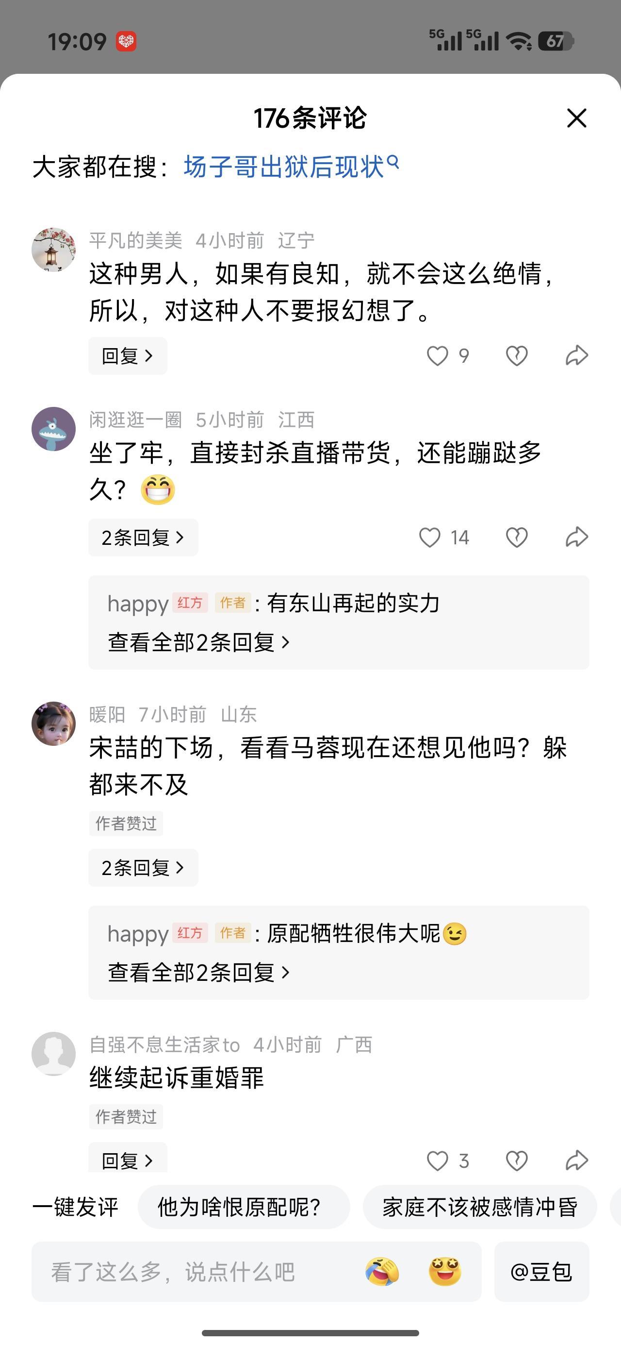 场子哥出来了, 据说他第一时间就见到了潘莲金。是潘接的他,出来第一眼就看到了三姐。现任把他送进去了,也不知她俩离没离。对他来说,无所谓了。 事情的走向谁也不能预测,但是可以借鉴。宋喆出来了,穷搜的,没什么出路,乡下养猪去了,其实一个现代化猪场不便宜的,都是大型设备,猪饲料都不用亲自卸车,都是吸入式的,我们村有一个,搞笑的是,自从大老婆带着孩子忍无可忍的走了以后,猪场赔的吃不上喝不上的。爹妈的养老金都搭上了,远远不够。 小三有财运的少,她要是有运气,就不至于当三了。这事儿本身就很玄幻。 场子哥肯定还不服,拭目以待吧!亏妻者白财不入。