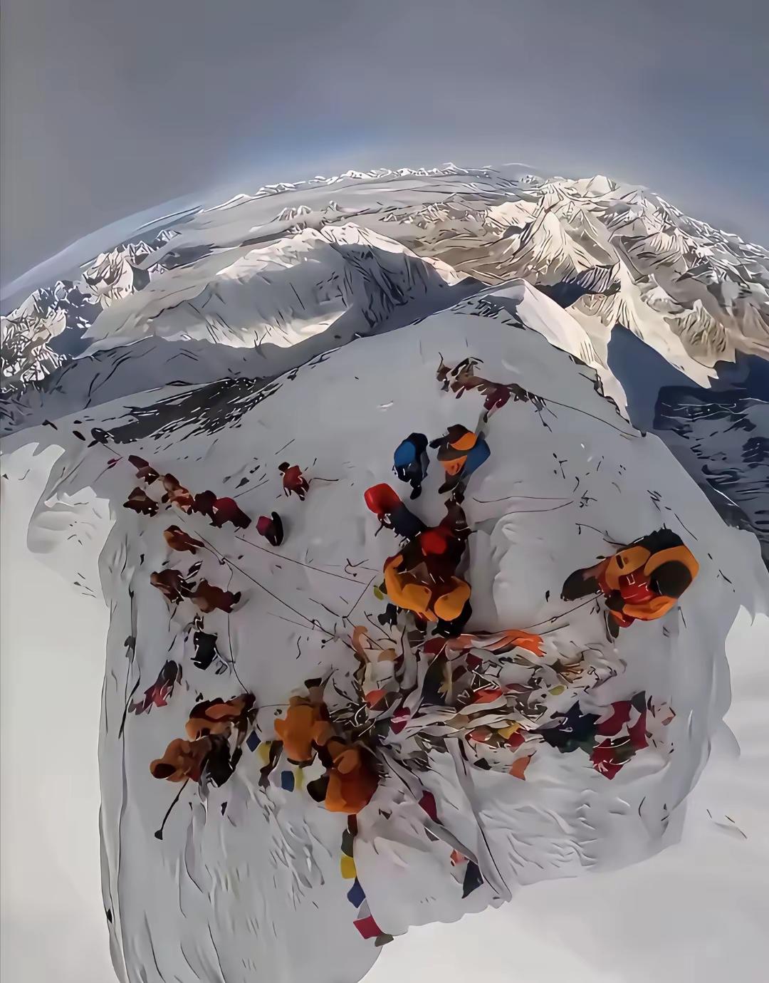 你敢相信,这是珠峰的峰顶? 看样子,是把积雪铲了铲,为了留住更多了的落脚点。 打卡说,我到了山顶。 人类有挑战极限的勇气。当真是棒棒的。都像我一样做缩头乌龟,就看不到山顶的景色了。会当凌绝顶,一览众山小。 四楼都困难得主,要开始站桩了。