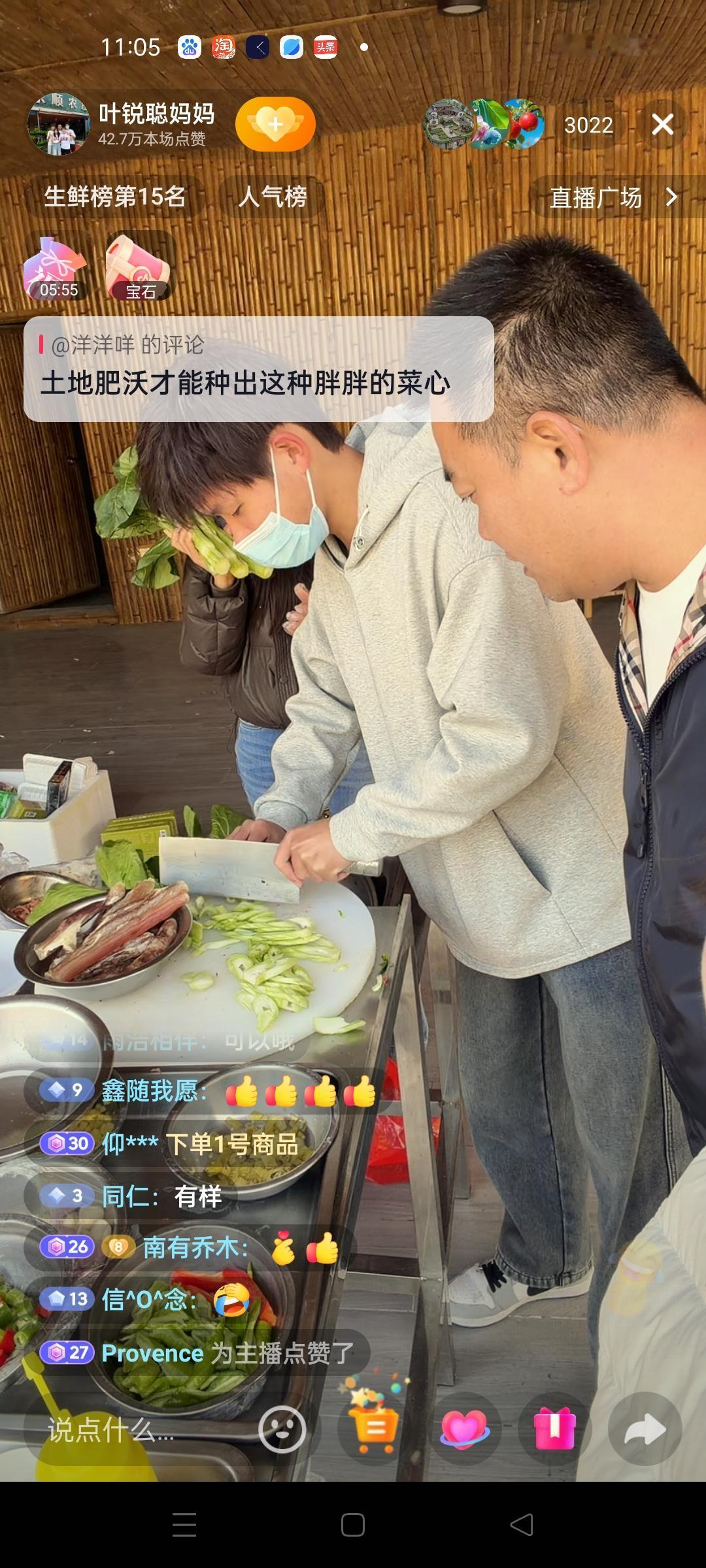 今天不光是叶锐聪爸爸妈妈带俩儿子来清远带货,叶锐聪的奶奶也一起来到了这里,不会讲普通话的奶奶跟叶锐聪交流上有些困难,但是奶奶的笑容足以治愈那颗离散了多年受伤了的心。 叶锐聪今天还展示了给大家切菜的手艺,虽然切不好,但是能不负粉丝们的期待走进镜头就是好样的了。