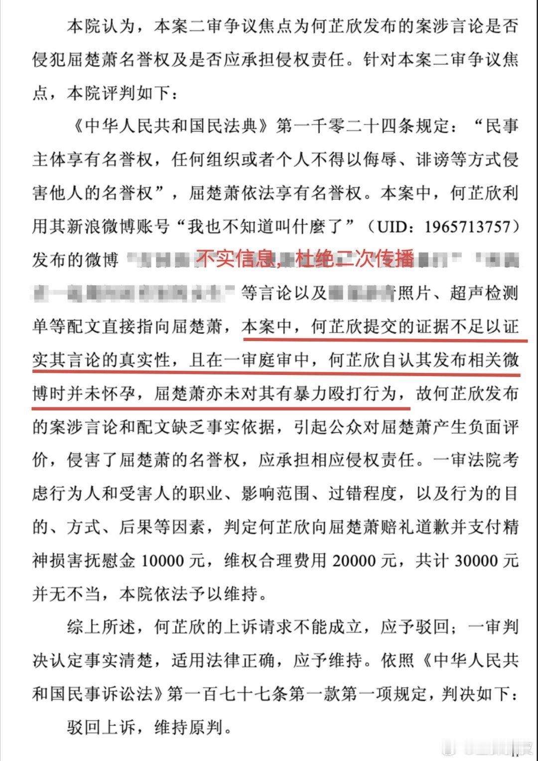 屈楚萧方公开胜诉判决书 幸好还没睡!划重点【屈楚萧没家暴!】屈楚萧工作室直接甩出二审判决书,这波是把清白锤死了!原来2022年就一审二审双胜诉,家暴纯属是恶意造谣啊,这些年闷头演戏不炒作,也没啃角色CP红利,连胜诉证据都藏着这么久不声张,这次必须为他正名!!