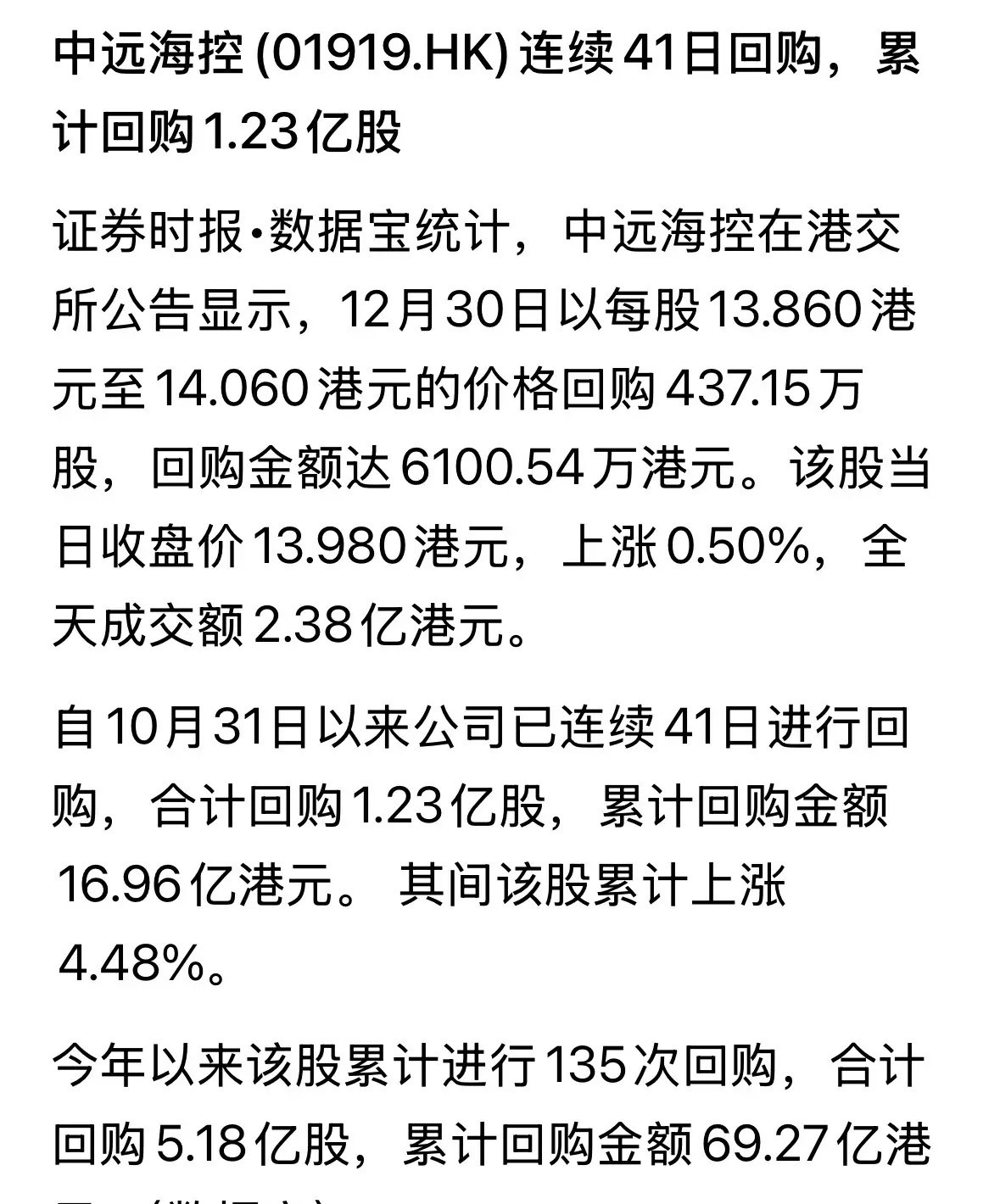 中远海控25年的回购达5.18亿股,金额69.27亿港元,回购均价13.37港元,港股现价13.9元,约比回购均价高4%左右,港股全年涨幅24%,A股则有9%。目前中远海控2351亿元的总市值,动态市盈率6.5倍。许多人都认为中远海控数百亿元,甚至于2022年净利润高达1097亿元不可持续,大概率会回落到从前几十亿元的水平,2023年便瞬间下降78%仅余238亿元,再这样来一年便回到百亿元规模以下。业绩不稳定,是前数年来中远海控股价令人担忧的地方。但近年来,仍旧保持在数百亿元净利润规模,或许说明海运已经不算周期性的行业吧。