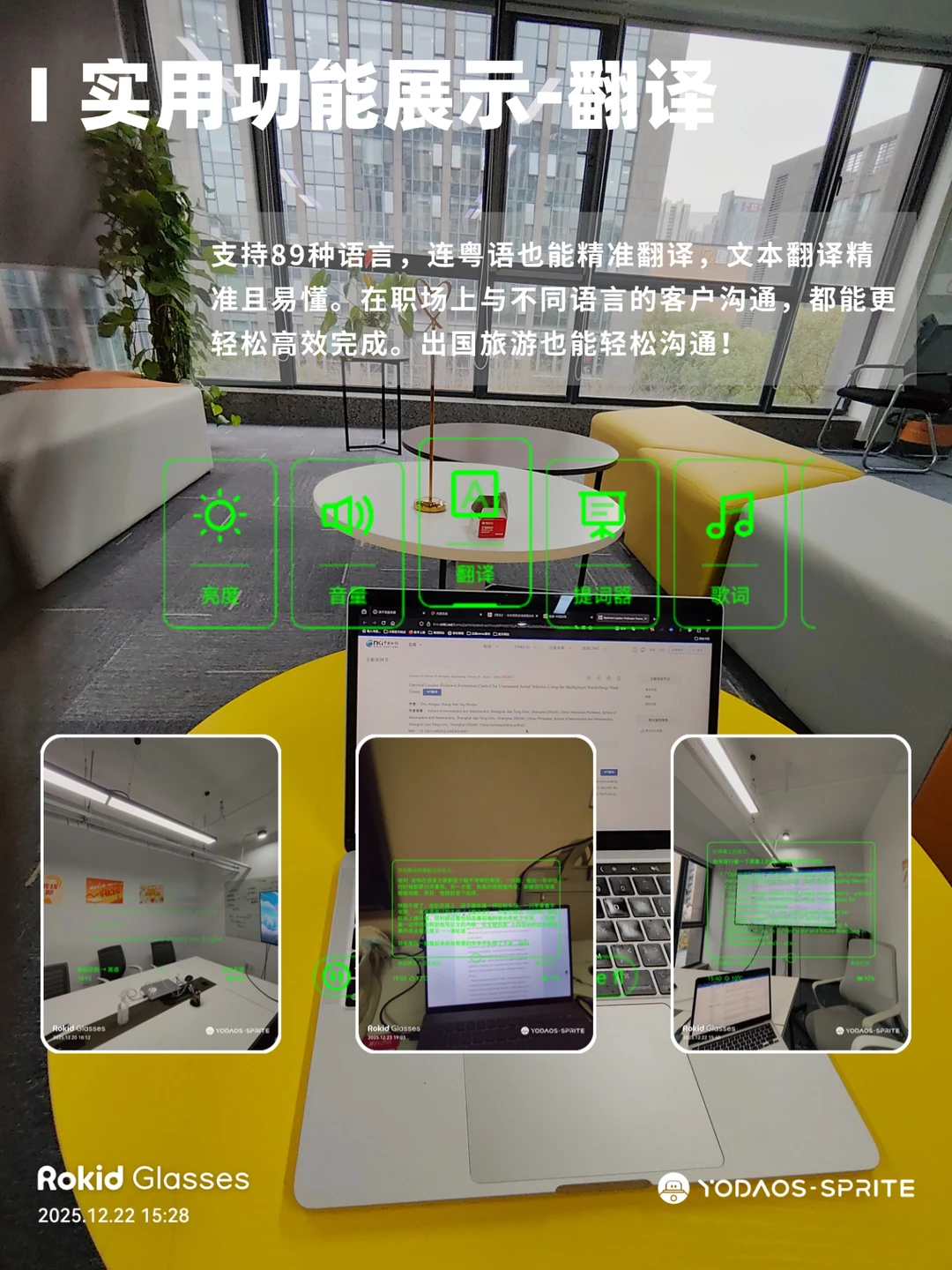 学习和工作上遇到上台演讲、工作汇报时,不用死记硬背发言稿,把稿件提前载入眼镜。文本清晰展示在眼前,智能跳段跟读,全程稳定发挥