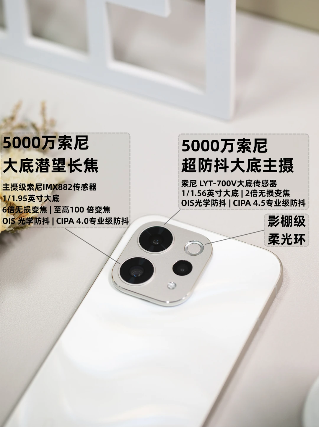vivo S50的硬件底子是真的能打!给到了大底主摄、旗舰级潜望长焦,并且这两个镜头都支持防抖,加上影棚级柔光环,硬件这一块稳到不用慌~