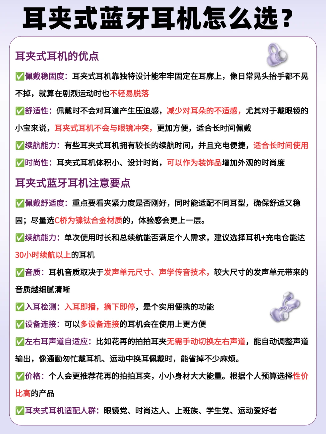 当然!挑耳夹式耳机也是有技巧的~豆豆也做了选购要点👇(具体内容可看图3)
