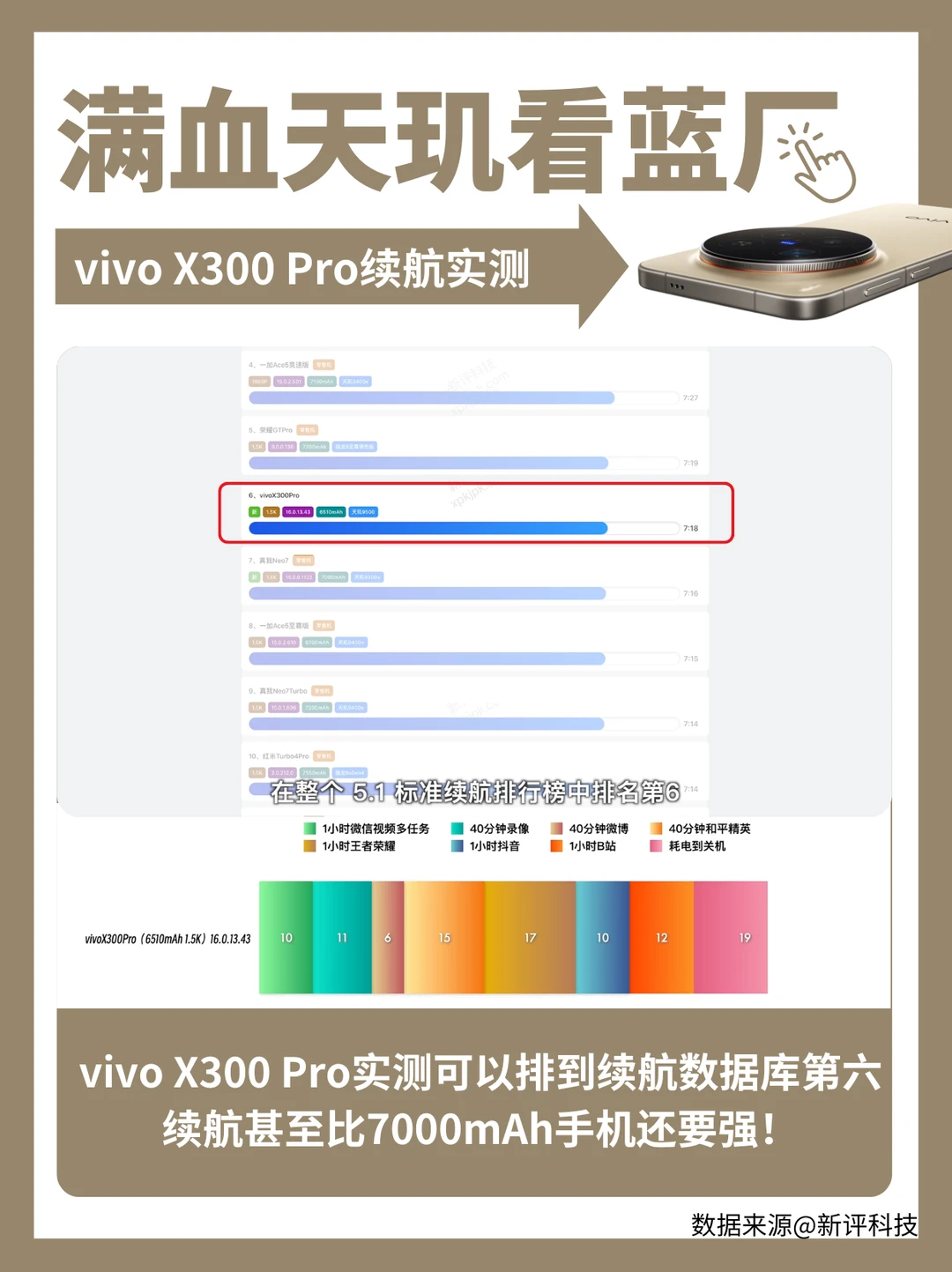 至于续航更是颠覆认知!虽然只配了6510mAh电池,但X300 Pro实测居然比不少7000mAh的手机还顶。有媒体直接封它“7000mAh档续航最强机” 真的太绝了!!