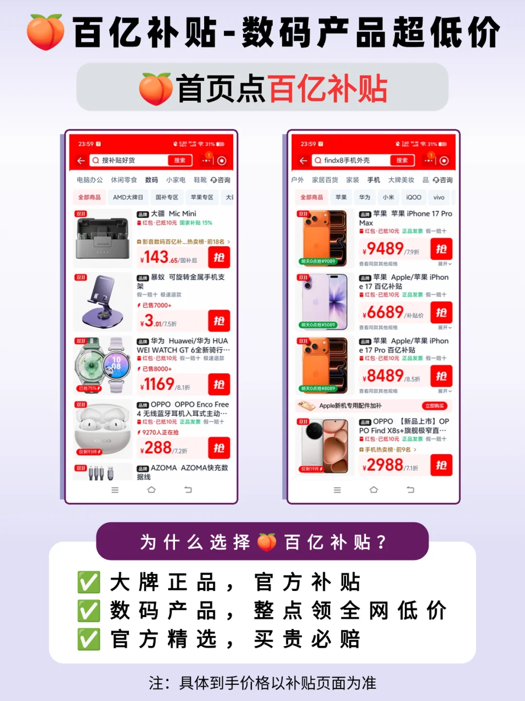 全是官方直供的货,拆开包装就能查验正品,用着也踏实。而补贴是平台真金白银省差价
