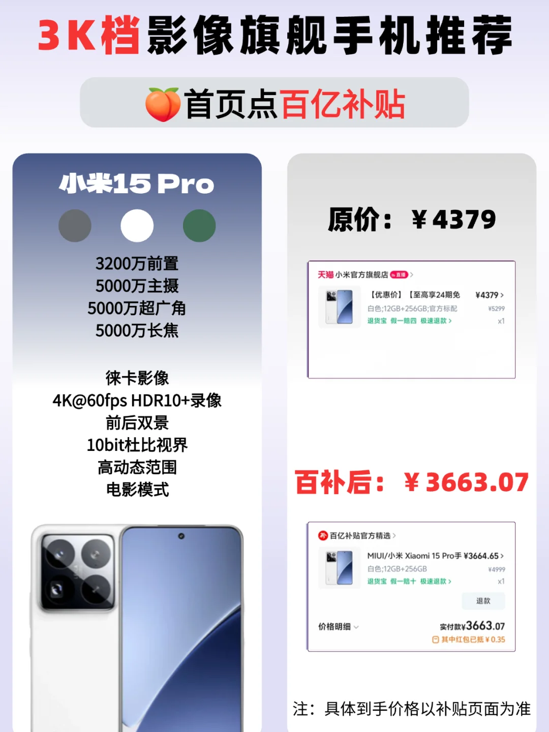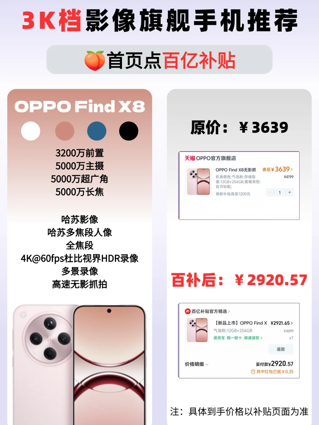 嗨~姐妹!讲真的!我已经N多年没在淘宝上买过东西了,尤其是数码产品类;但这几天我发现淘宝百亿补贴买数码产品居然能这么便宜!!!因为豆豆喜欢拍照,就想买小米15Pro和OPPO Find X8回来体验一下两款不同旗舰机的拍照风格。于是我就点进淘宝百亿补贴看看,没想到这次淘宝百亿补贴让我省下这么多钱!我买的小米15Pro和OPPO Find X8都是12GB+256GB,一下子省了2500多,现在我就把这个省钱小妙招分享给近期想换新机的小宝们!