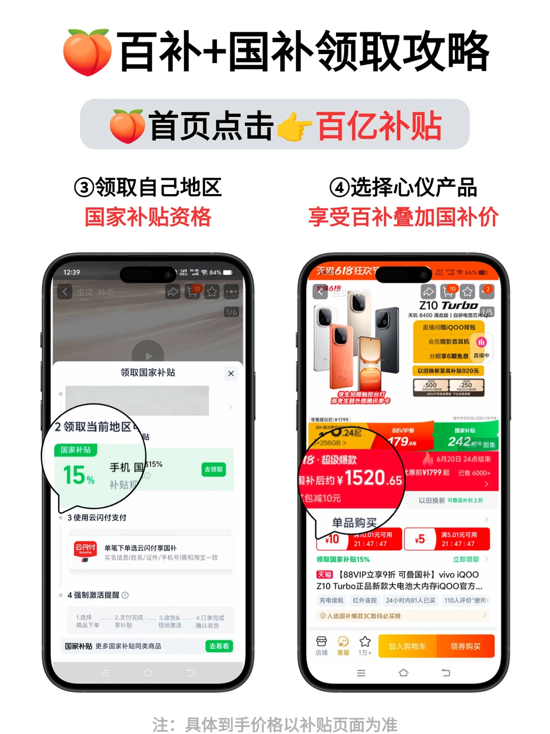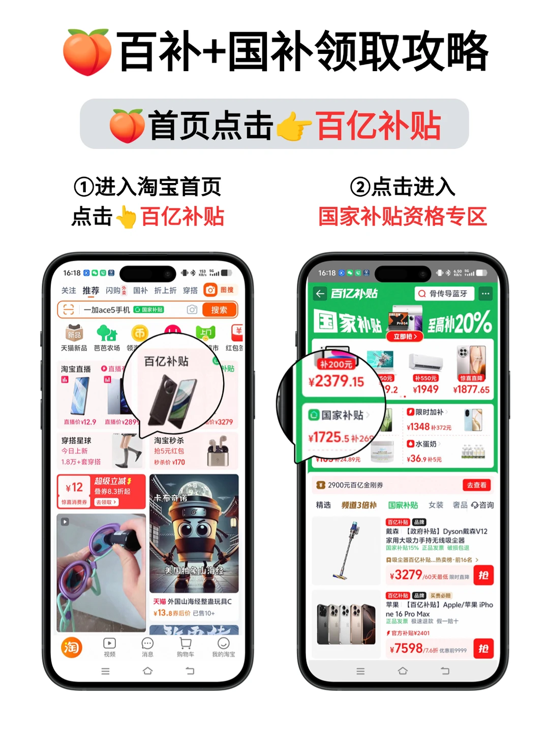 淘宝百亿补贴简直太划算了,再叠加国补,补上加补后低至补贴5折起~更香了!当然小宝们还可以趁这次淘宝百补+国补入手笔记本、平板、智能手环等,领取步奏是一样的。具体到手价格以补贴页面为准!