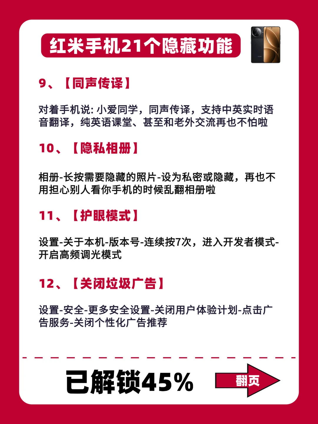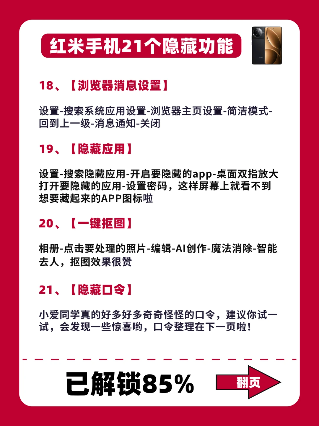 哇呜!雷军都收藏过的21个红米隐藏功能❗️