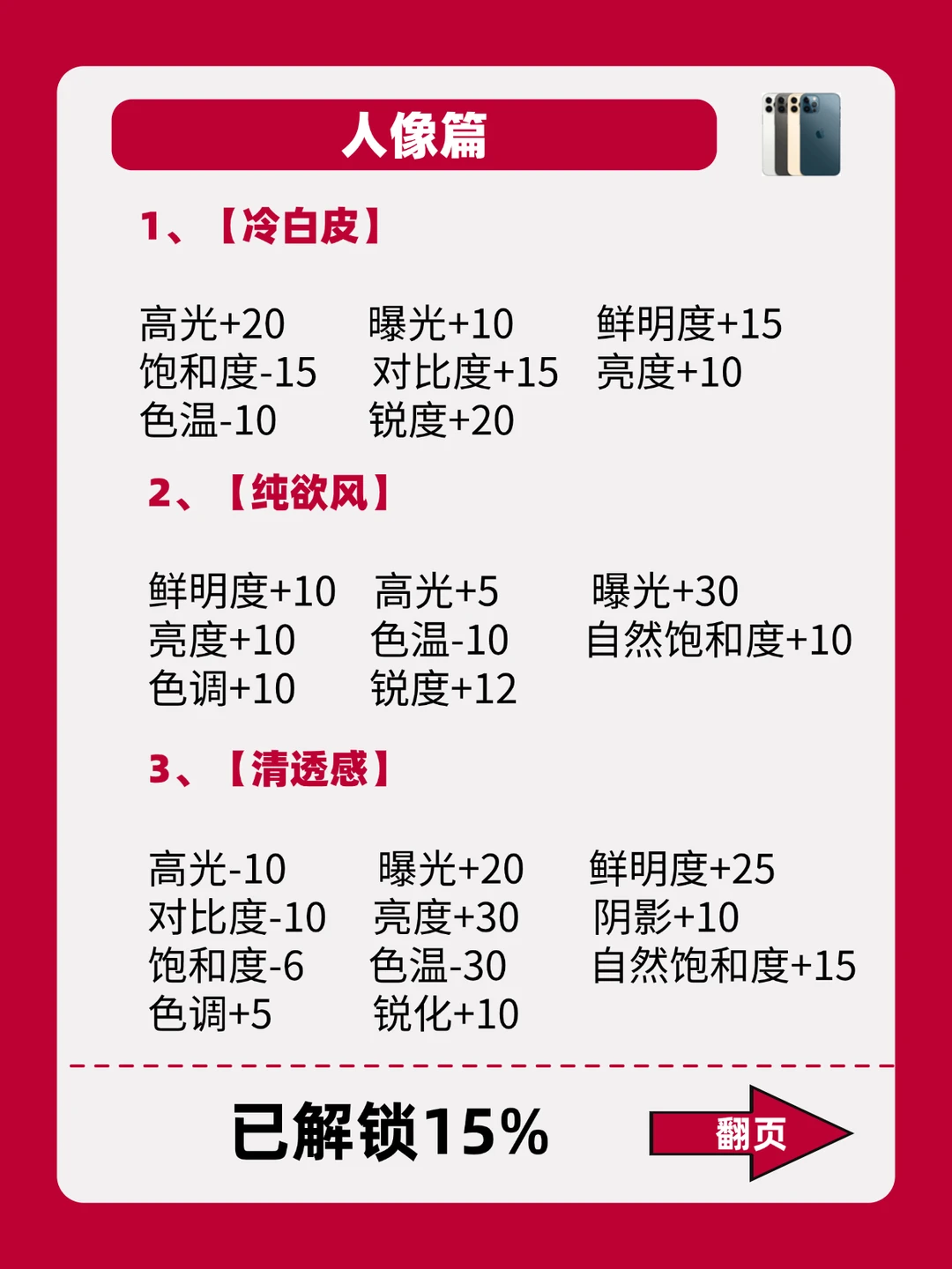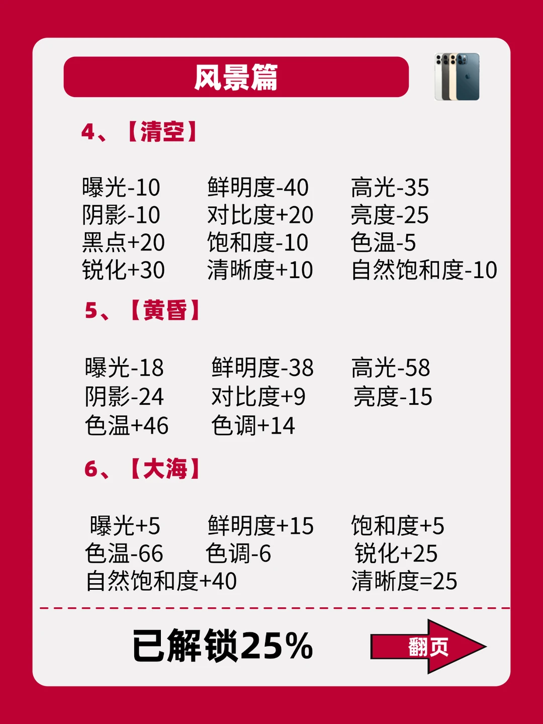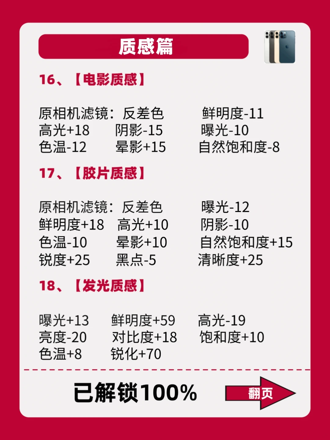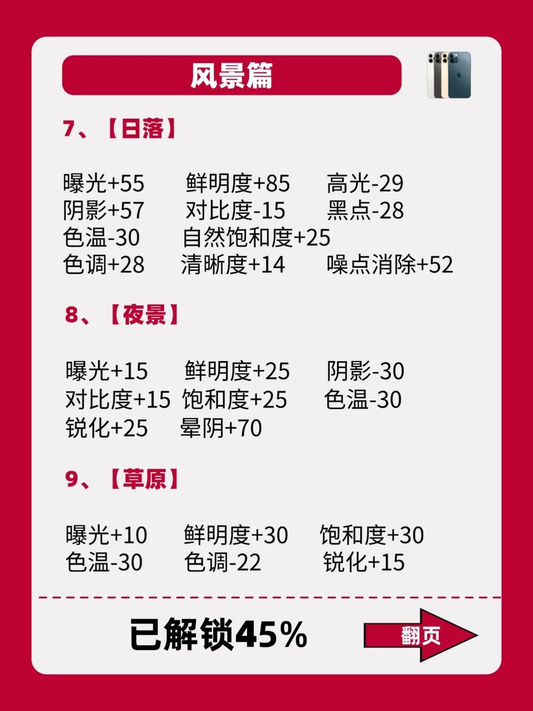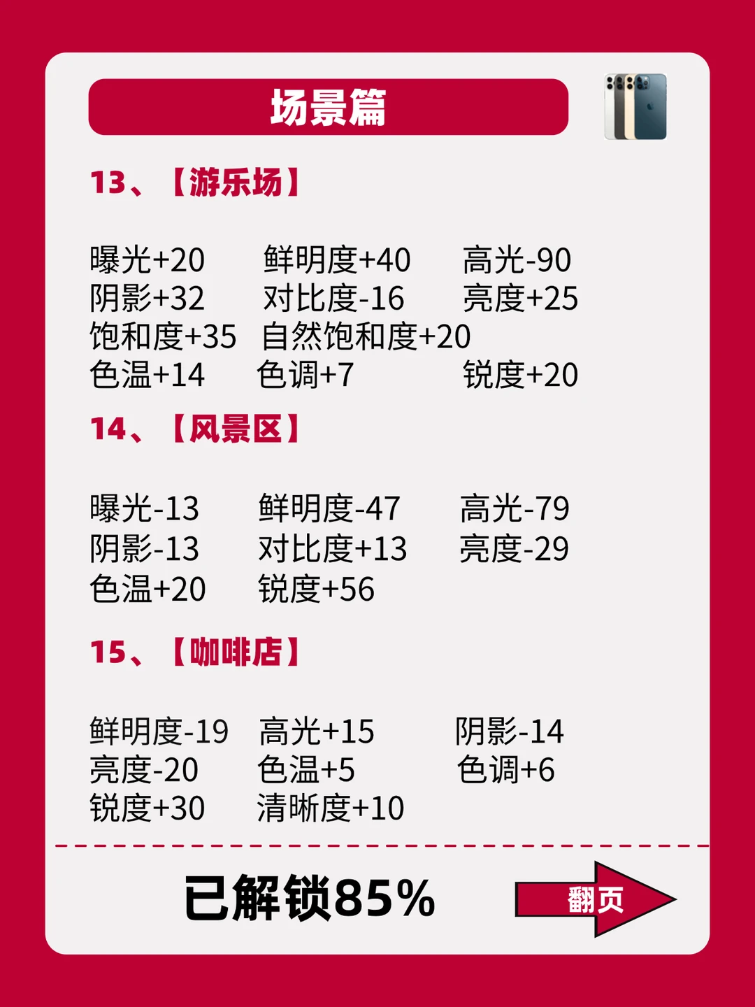 - 嗨~姐妹! iPhone自带的调色功能你们会用吗? 今天豆豆给大家整理了18款不同的场景以及照片类型搭配公式! 照着公式调!有手就会,拯救废片! 喜欢的可以先收藏起来,后面都能用得上! 期待姐妹们晒出大片! -