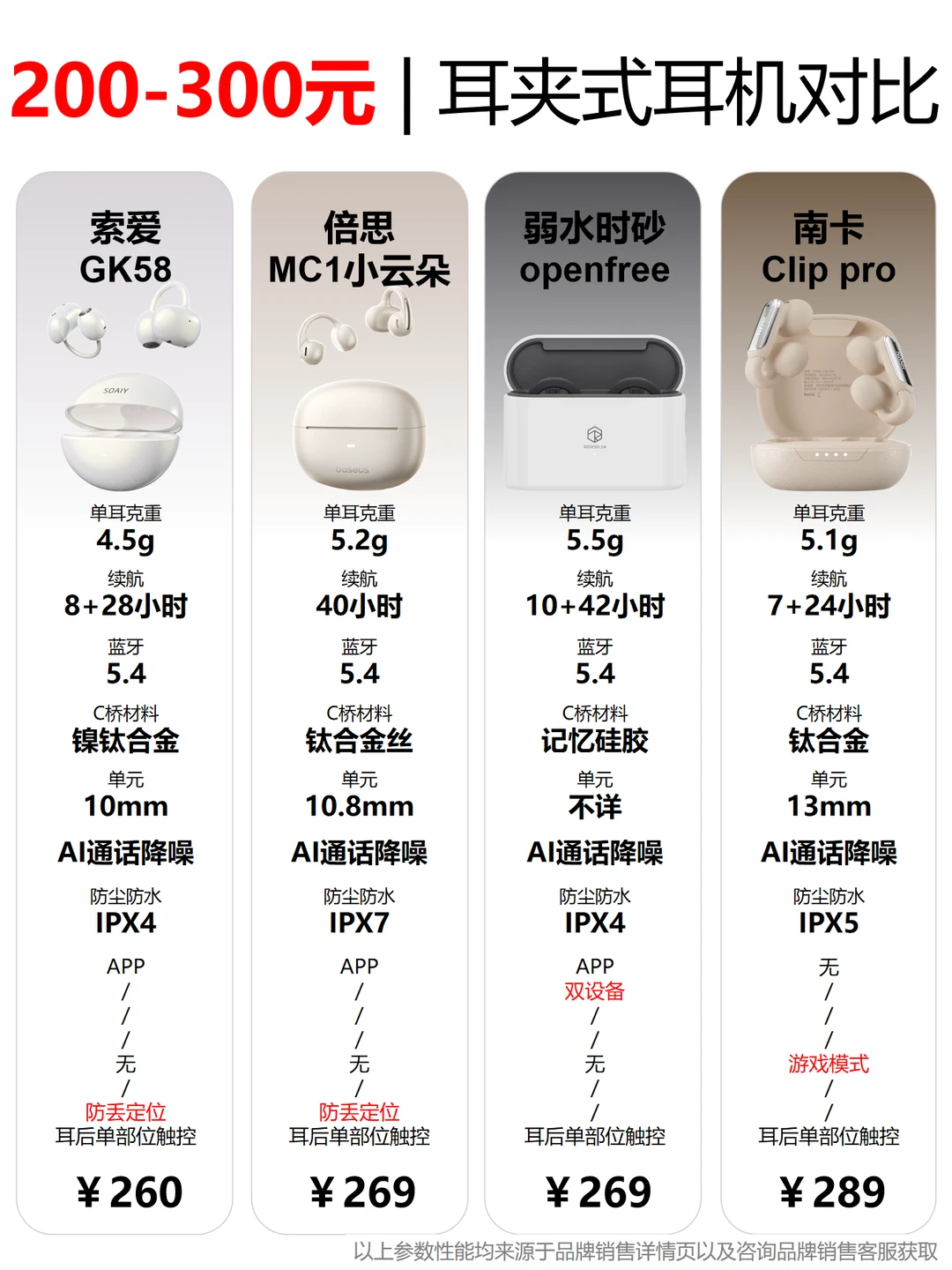 嗨~姐妹!网上热门耳夹式耳机真的太多了!怎么才能选到高性价比又舒适并且音质还要好的耳机?今天豆豆做了12款热门耳夹式蓝牙耳机的详细参数对比,也挑选了3款各价位段的高性价比耳机!!!