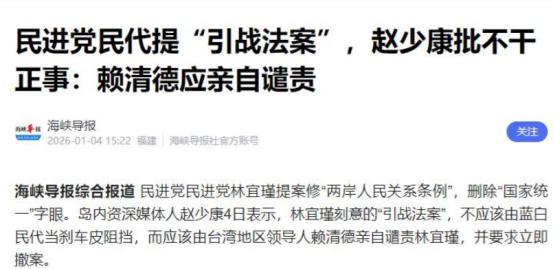 2026年第4天,台南升起五星红旗,赖清德摊牌,郑丽文露出真面目 就在台南红旗升起的前一天,赖清德通过嫡系林宜瑾抛出了一颗 “政治炸弹”,联合 20 名 “绿委” 提案修改《两岸人民关系条例》,要删掉 “国家统一”“台湾地区” 这些关键表述。这已经不是偷偷摸摸的小动作,而是明目张胆的 “法理台独” 摊牌。 这位 “新潮流派” 推上台的政客,一直把自己当成 “台独执行者”,行事鲁莽得近乎自杀。2025 年台风救灾时,他一边对灾民说 “那边有帆布”,一边忙着给递帆布的亲信林俊宪站台;面对陈亭妃反映灾情,不耐烦地打断 “简单讲就好”。 这种 “派系优先于民生” 的逻辑,到了两岸议题上愈发疯狂。2026 年元旦讲话中,他还在鼓噪 “强化防卫韧性”,被国台办痛批为 “和平破坏者”“战争煽动者”,可转脸就敢动 “法理台独” 的歪心思。 赖清德的底气,一半来自对民意的误判,一半来自外部势力的撑腰。他以为 2025 年 “大罢免” 失败后民众会陷入麻木,却没看到 70% 的台湾人支持 “和平交流”,63% 反对 “为台独而战”。 他仗着美国带领 31 国说三道四,却不知这些国家要么想拿台湾当筹码,要么只是美国的 “应声虫”,日本在西南诸岛的军事部署,更是包藏着干涉台海的祸心。 可他忘了,2025 年底蓝白联手刚挡下他 400 亿美元的军购案,800 万人联署弹劾他 “滥用司法打压异己”。这种失道寡助的摊牌,与其说是 “使命感”,不如说是困兽犹斗,赖清德的 “台独” 闹剧,注定要以更难看的方式收场。 台南红旗飘扬、赖清德摊牌的档口,国民党主席郑丽文的表现,让不少盼着两岸对话的人傻了眼。这位刚上任时在东吴大学喊出 “台湾人自然是中国人”,还表态 “愿在九二共识基础上访陆” 的蓝营领袖,转眼就在 “中常会” 上宣称 “国民党效忠中华民国”,彻底暴露了 “华独” 底色。 这出反转戏码,其实早有伏笔。2026 年元旦,她破天荒地出现在赖清德主导的升旗典礼上,站在民进党 “外交部长” 身后,全程不与赖清德互动,却和韩国瑜合影,被解读为 “借场发声”。 当时大陆还肯定她的 “中国人认同”,觉得国民党能当 “沟通桥梁”,可没过几天,她就用 “效忠中华民国” 的表态,打了所有期待两岸对话者的脸。 郑丽文的 “变脸” 恰好撞上民心向背的拐点。她上任后靠 “破局路线” 拉回 3.9% 的支持率,中间选民正是看中她 “淡化蓝绿、争取和平” 的姿态。 可当洪秀柱呼吁她 “大胆说促统”,她却用 “华独” 言论回应,这不仅让统派失望,更让那些盼着 “和平避战” 的年轻人寒心。 对比台南升起的五星红旗,郑丽文的立场暴露了一个残酷现实:岛内蓝绿虽斗得你死我活,但在 “拒统” 上常是一丘之貉。就像美国一边说 “愿沟通” 一边派机侦察,郑丽文的 “两岸善意” 不过是政治算计,真到了关键节点,还是会露出 “独” 的真面目。 2026 年初的这三件事,看似孤立,实则勾勒出台海局势的真实图景。台南红旗是民心的投票,赖清德摊牌是 “台独” 的末路,郑丽文变脸是蓝营的困境,三者共同指向一个结论:任何逆统一大势的行为,都注定失败。 赖清德该好好看看台南的变化:当年喊着 “后悔投民进党” 的深绿支持者,如今可能就在红旗底下鼓掌;那些被军购案、“绿色恐怖” 逼得喘不过气的年轻人,早已厌倦了政治内耗。 郑丽文也该明白,中间选民要的是真和平,不是 “华独” 包装的假善意,国民党要是丢了 “九二共识” 的根,迟早被民意抛弃。 更要警惕的是,就像美国摔了飞机可能 “狗急跳墙”,赖清德在 “法理台独” 碰壁后,说不定会搞出更危险的挑衅。但台南的红旗已经说明,台湾民众想要的是厦金大桥通起来、贸易便利化实起来,不是战机绕岛、导弹瞄准。 “台独” 分子再怎么折腾,也挡不住汉字里的根、民俗里的魂,挡不住两岸同胞 “要和平、要统一” 的心声。2026 年初的台南,已经竖起了风向标:红旗插上 “铁票仓” 只是开始,祖国完全统一,才是最终的结局。