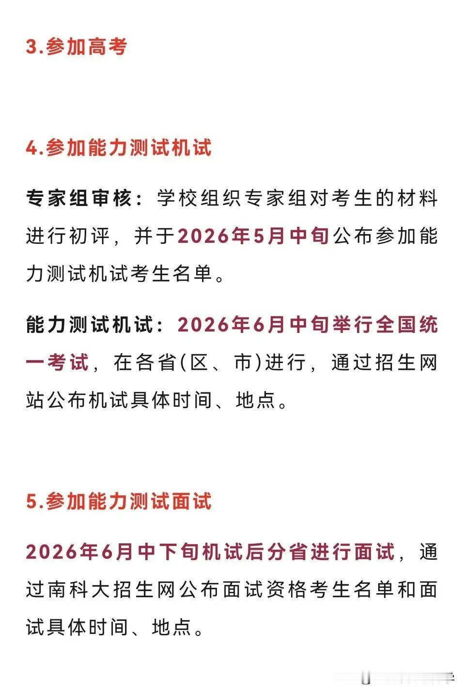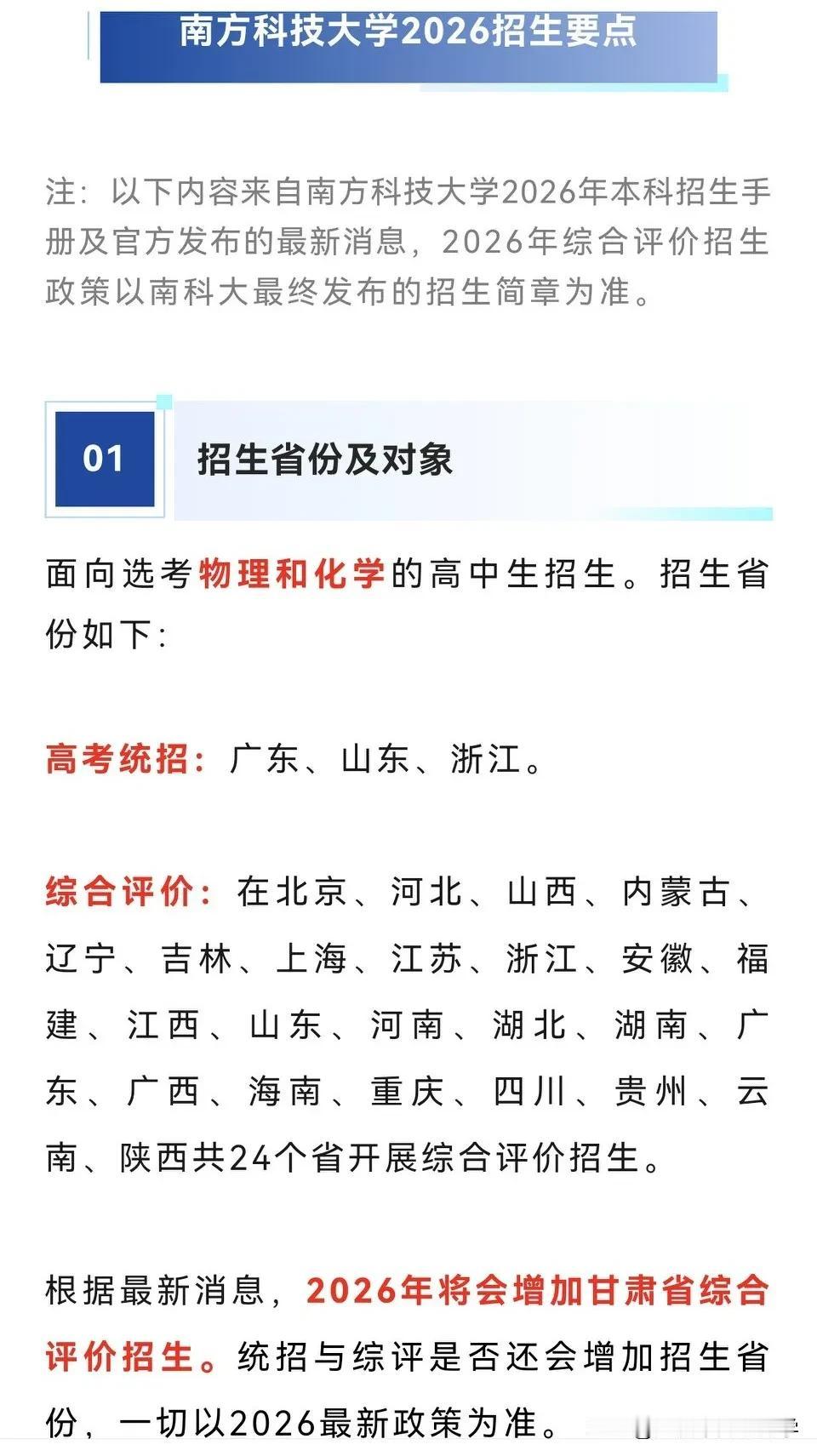 重磅!2026年南方科技大学启动招生 南科大如今已经成为深圳最热门的高校之一, 录取分数线逐年攀升, 收到全国各地特别是大湾区考生的追捧。 作为国内顶尖新型研究型大学, 南科大以“明德求是,日新自强”为校训, 致力于培养具有全球视野的拔尖人才, 为有志于投身前沿科学与创新的学子开辟全新通道。 南科大自建校以来, 始终走在教育改革前沿, 在国内率先采用基于高考的“631”综合评价录取模式。 这一模式打破传统“一考定终身”的局限, 通过多维评估选拔具备创新潜质的优秀学生。 高考成绩占比60%: 考生需达到所在省份一本线/特招线, 确保基础学术能力达标。 能力测试成绩占比30%: 包含机试(25%)和面试(5%), 全面考察数理逻辑、创新思维与问题解决能力。 高中平时成绩占比10%: 涵盖综合素质(3%)和高中学业水平考试成绩(7%), 反映长期学习表现。 综合评价模式不仅减轻高考压力, 更注重学生综合素质, 为偏科但具备特长的学生提供展示舞台, 不少偏科竞赛生也特别热衷于南科大。