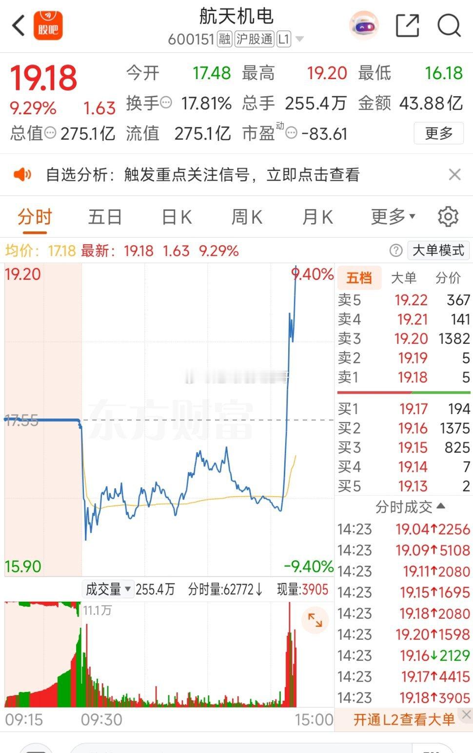 $航天机电 sh600151$ 起飞! 早上有被洗出去的吗!