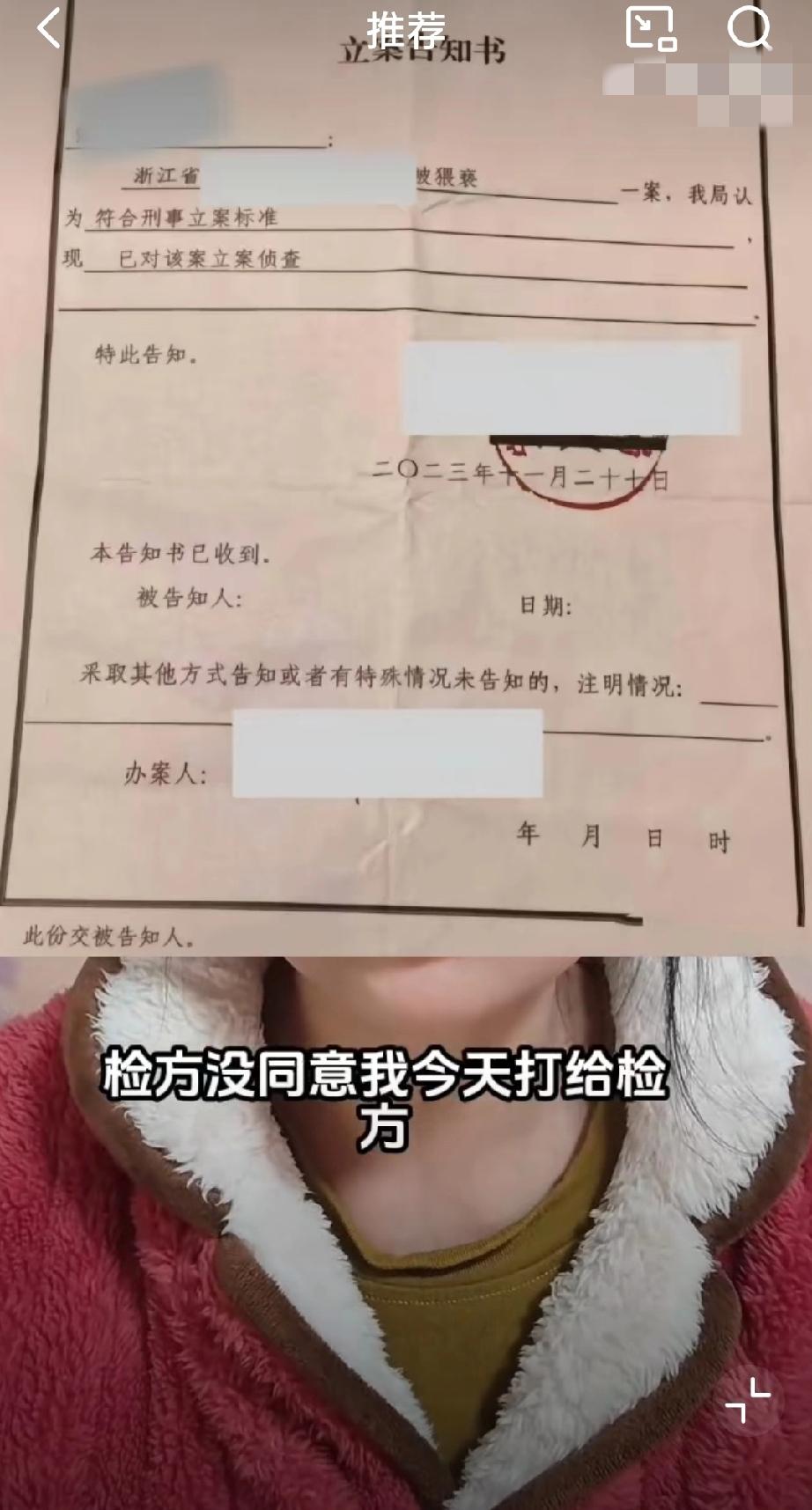 1月4日,琪琪妈妈发视频称,关于4岁女儿遭亲生父亲性侵一案的进展,警方回应她本打算对琪琪亲生父亲采取措施但检察院不同意,但检察院则回应她警方压根没提交相关材料。(来源:浙江宁波四岁琪琪的妈妈)。 根据琪琪妈妈出具过的资料显示:4岁琪琪外阴下联合处有0.3cm擦伤,2023年11月当地警方曾以猥亵进行过刑事立案。