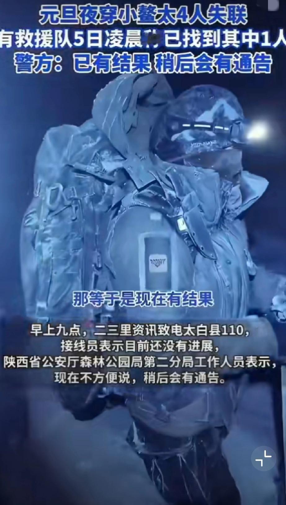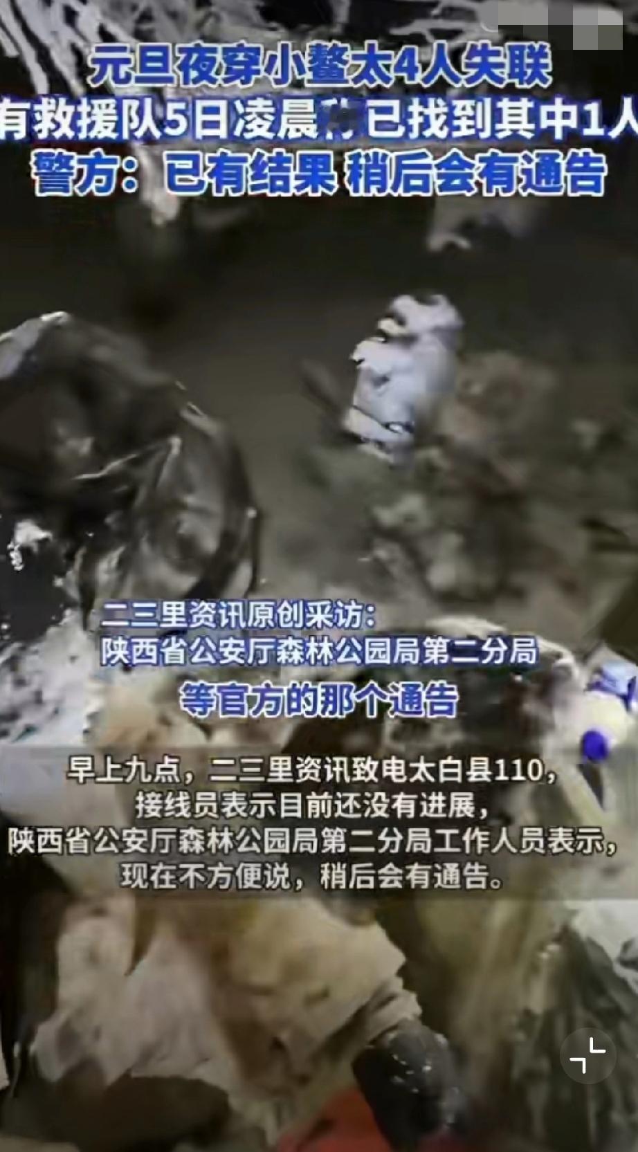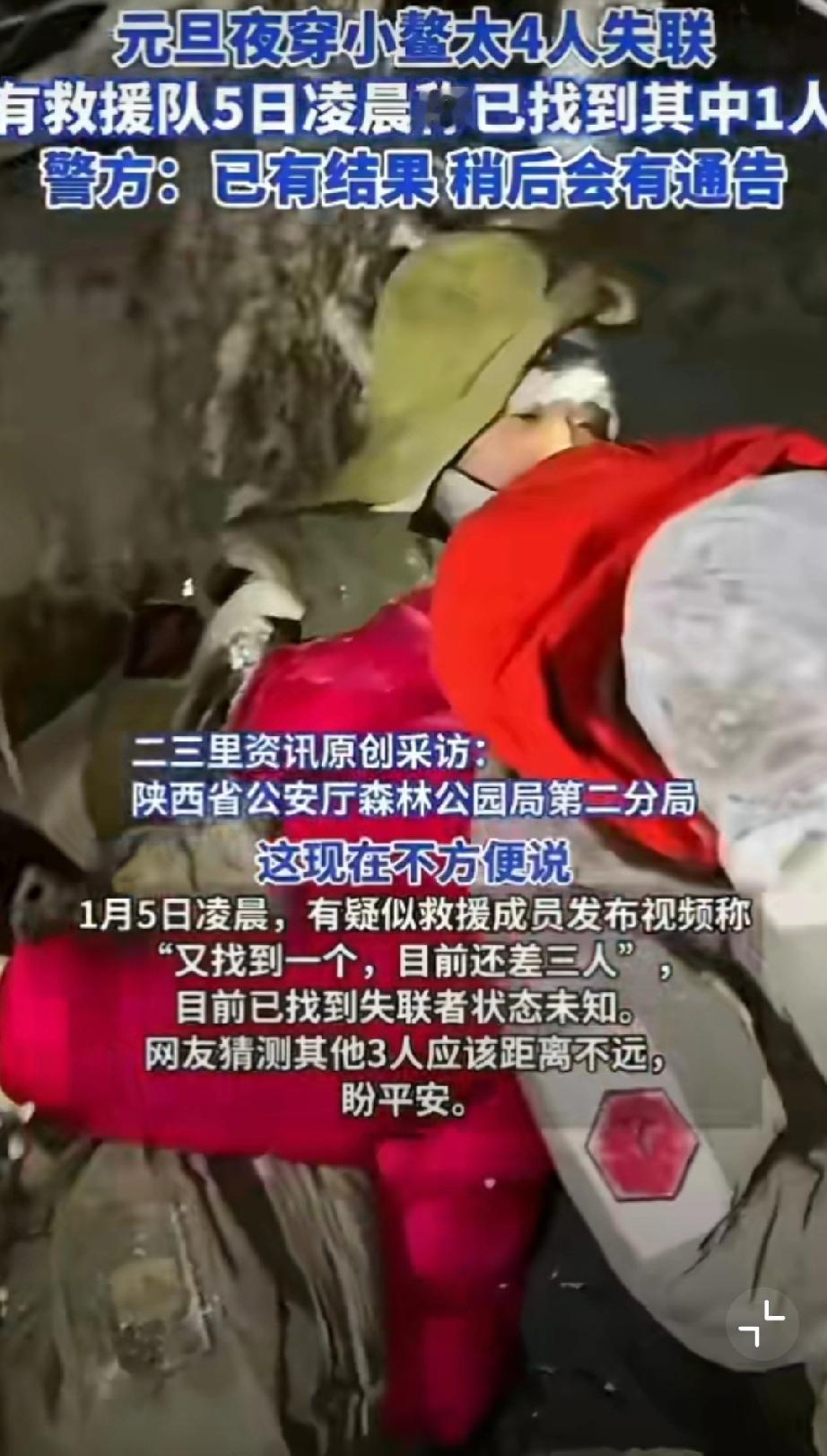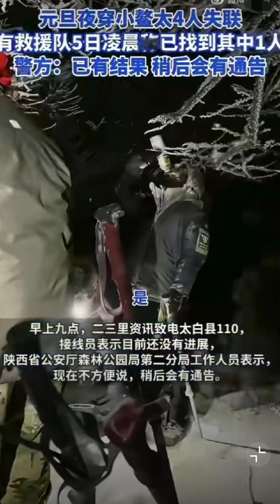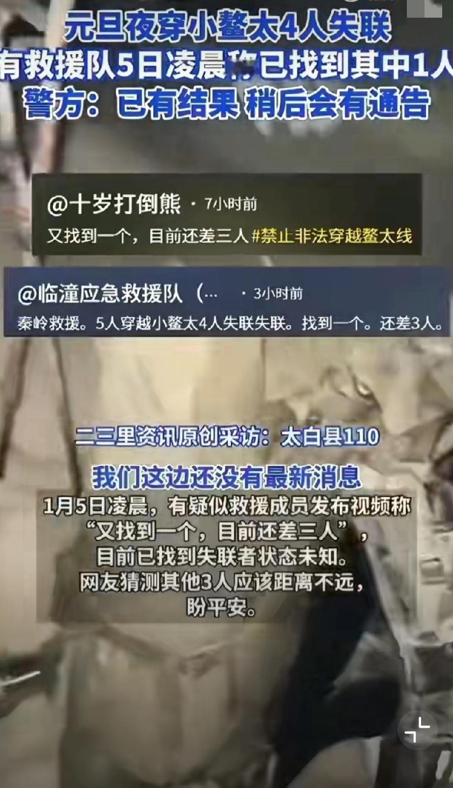 五人违规穿越秦岭小鳌太线失联,1人于1月3日凌晨因身体不适先行下山,安全;1月4日早上又有一名驴友成功下山。截至目前,仍有3名驴友处于失联状态。相关部门回应,正在搜救,具体情况仍需等待官方通报。“小鳌太线”是“鳌太线”的一部分,该线路因其海拔高、地形复杂、气候恶劣,被称为国内死亡率最高的户外线路之一,当地政府已明令禁止穿越。冬鳌太徒步 深圳登山失联 鳌太线救援