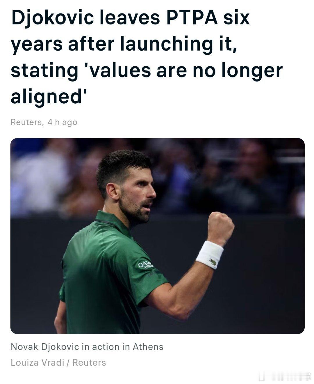 德约科维奇离开了6年前亲手发起的球员协会组织PTPA。网坛风云德约宣布退出ptp
